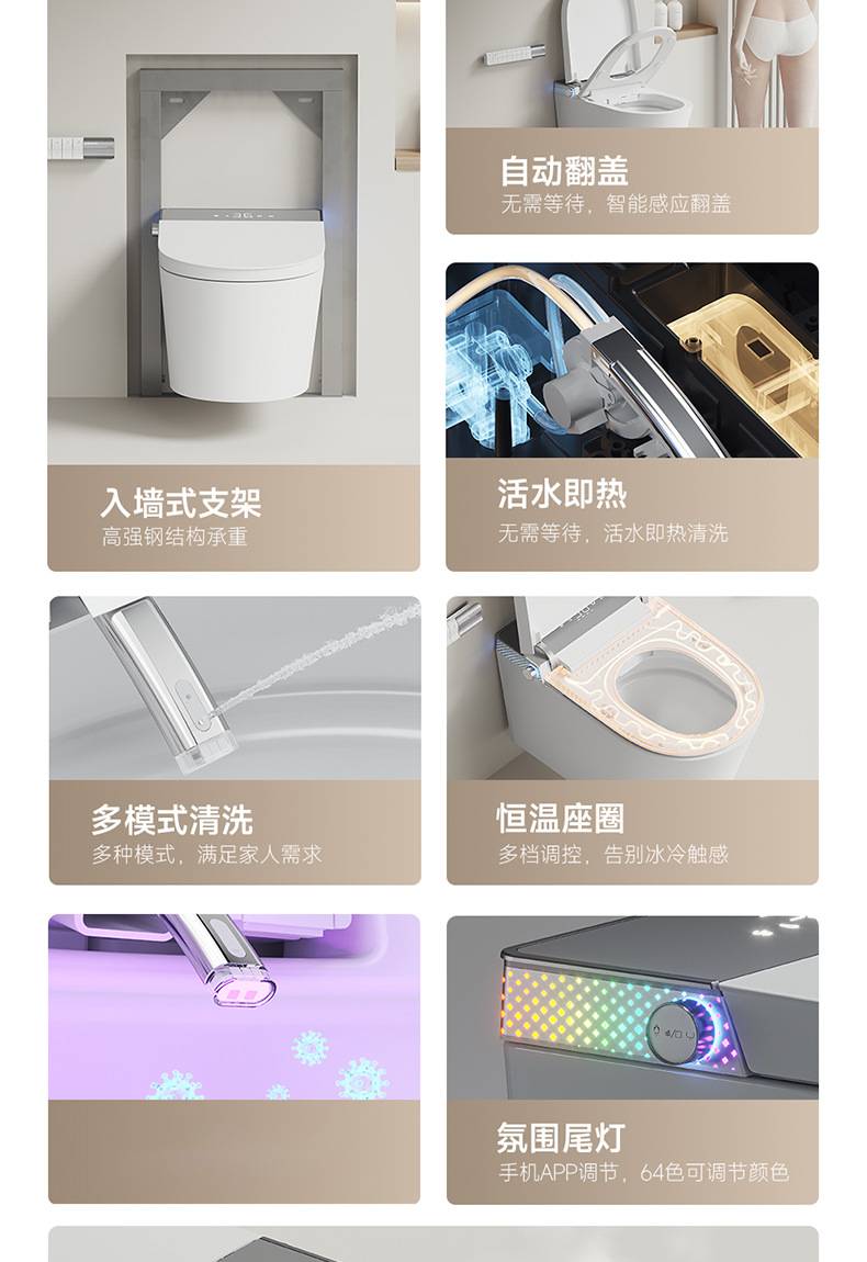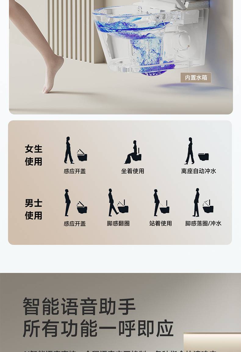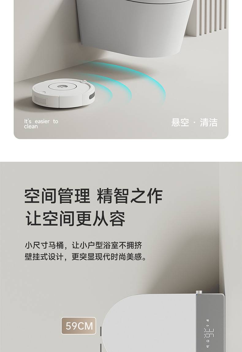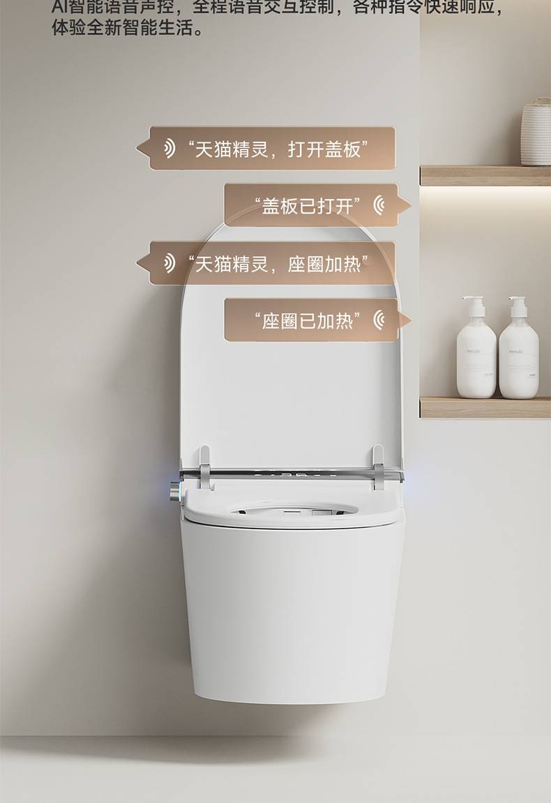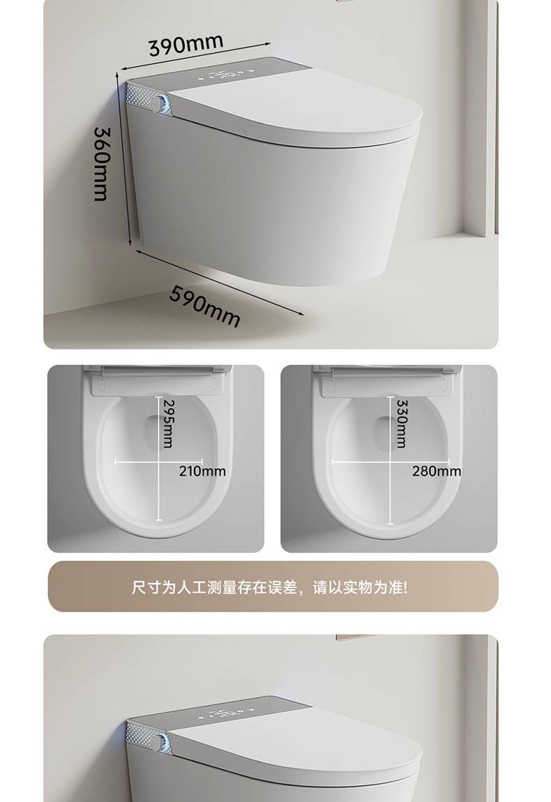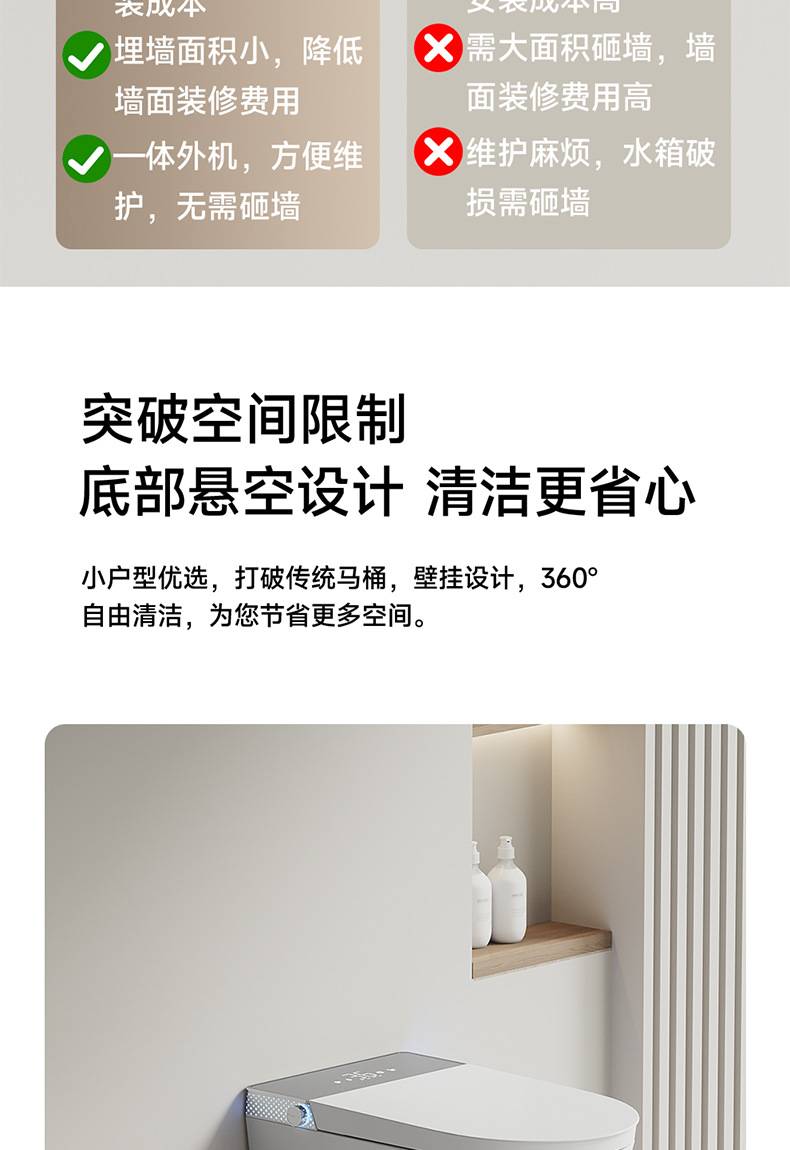 小户型59长壁挂式智能马桶即热式全自动翻盖泡沫盾家用悬挂坐便器