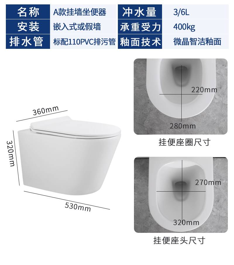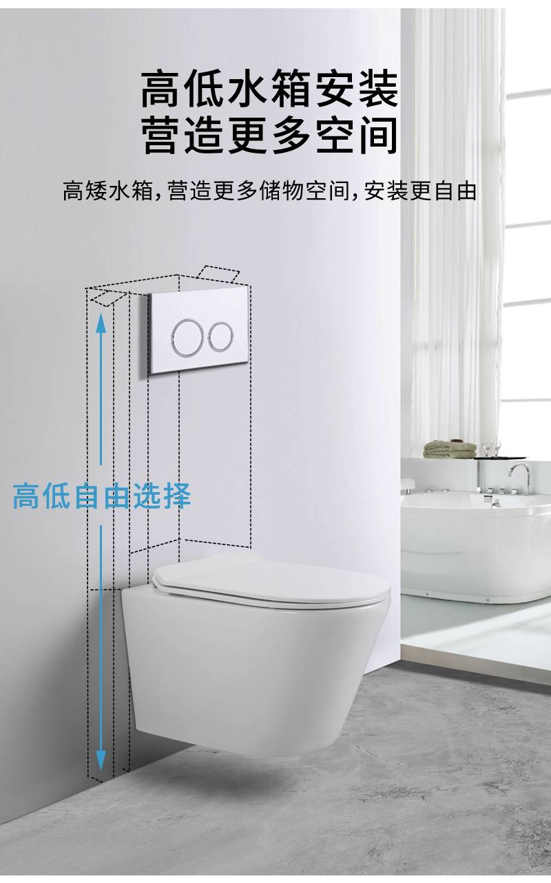 壁挂式马桶家用水箱入墙式隐藏悬挂嵌入墙排挂墙挂壁式坐便器