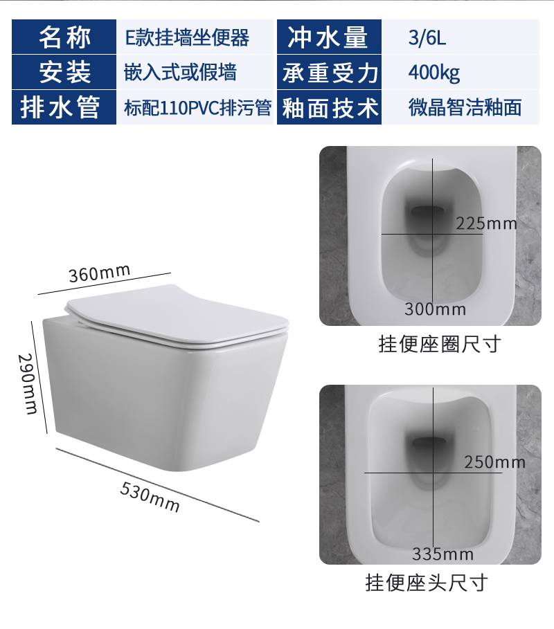 壁挂式马桶家用水箱入墙式隐藏悬挂嵌入墙排挂墙挂壁式坐便器