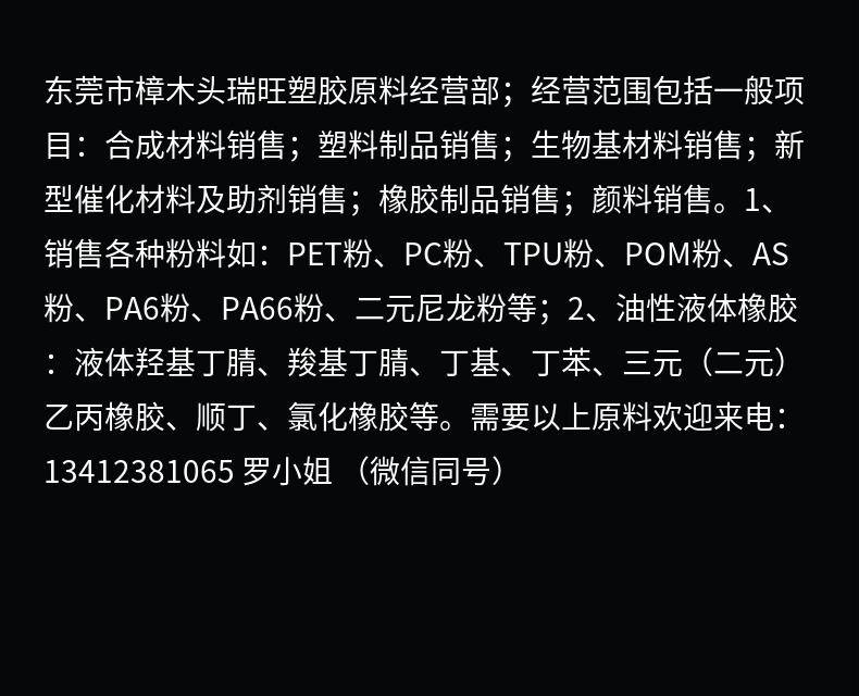 东莞市樟木头瑞旺塑胶原料经营部(个体工商户)