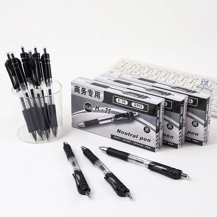 按动中性笔0.5mm笔芯圆珠笔商务签字笔黑红蓝碳素笔学习办公文具