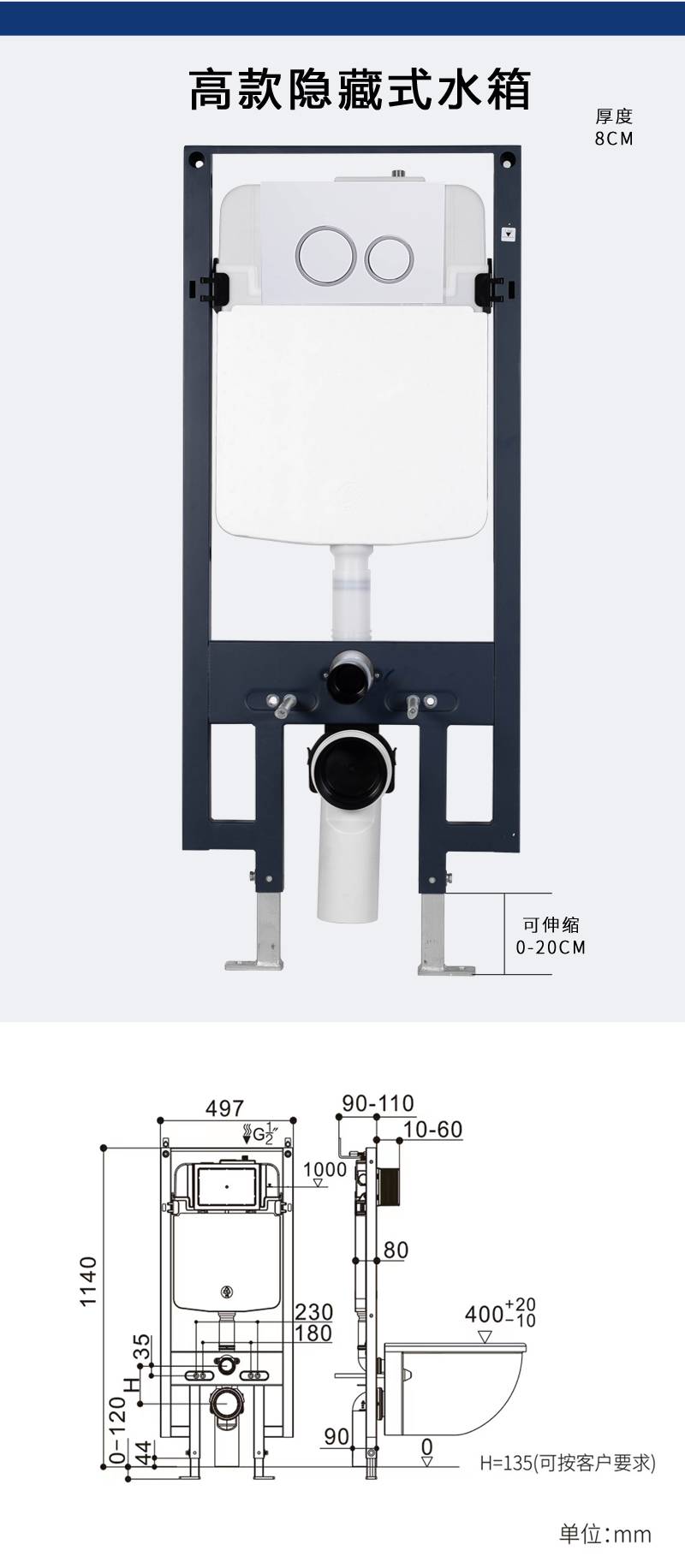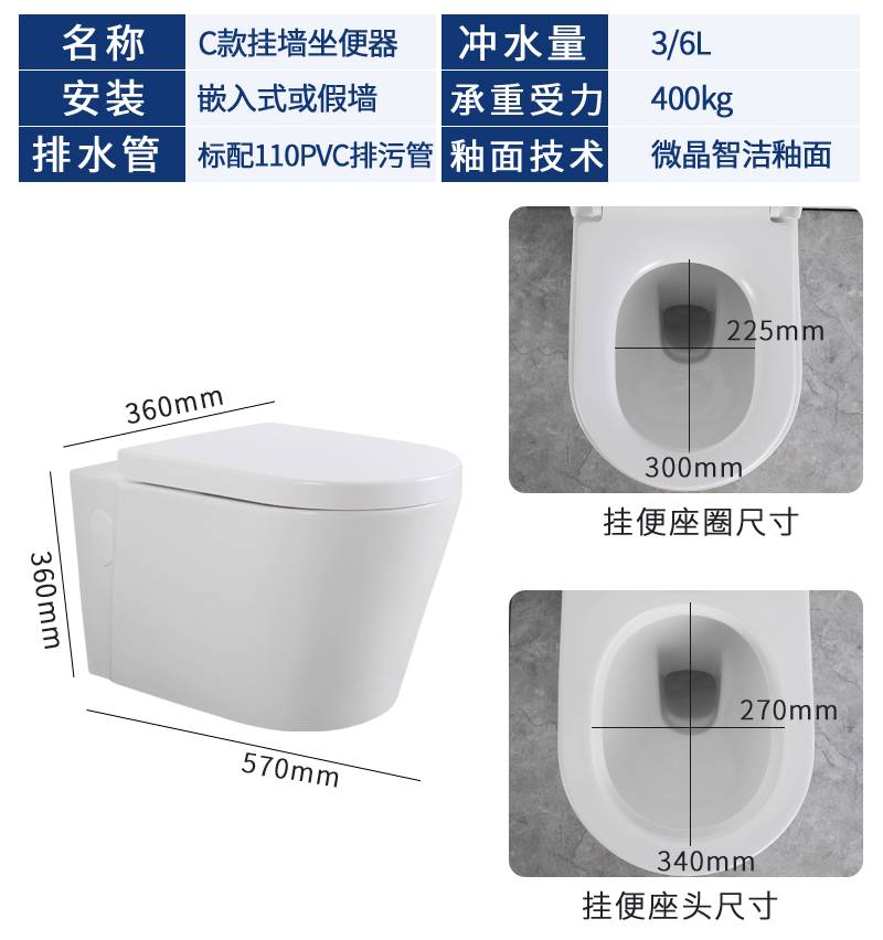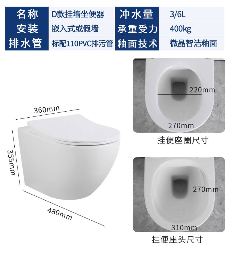 壁挂式马桶家用水箱入墙式隐藏悬挂嵌入墙排挂墙挂壁式坐便器