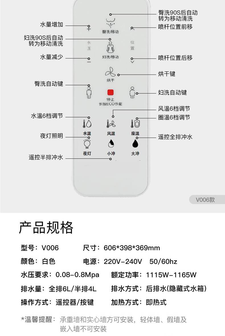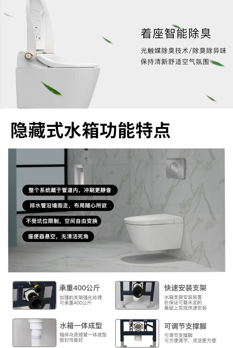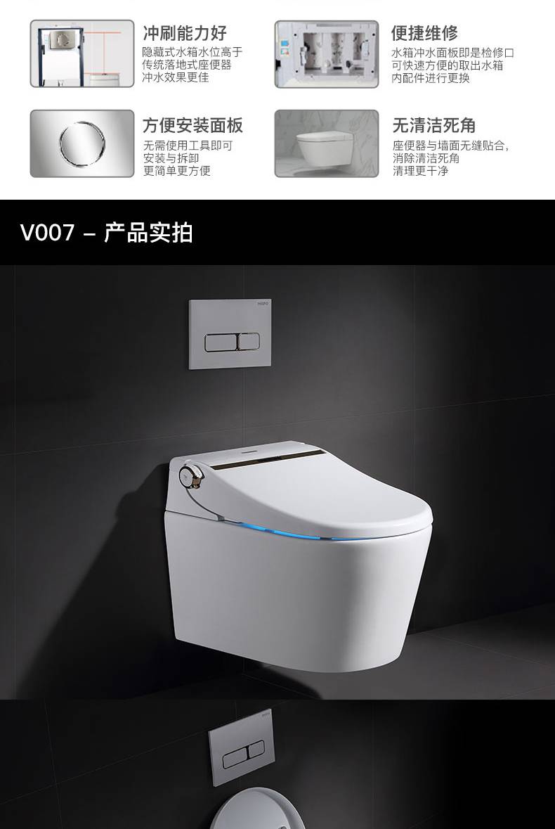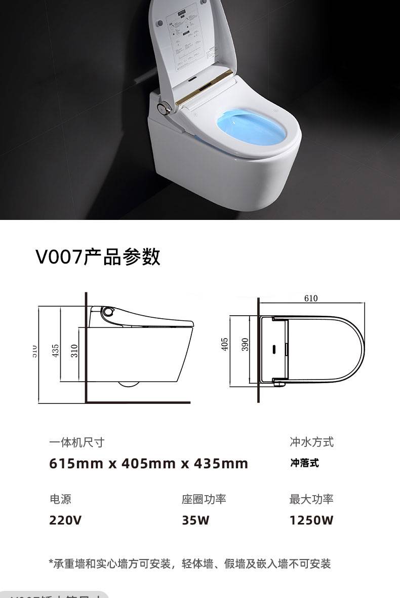 OD59批发V006007壁挂智能马桶墙排嵌入隐藏水箱入墙一体式悬空坐