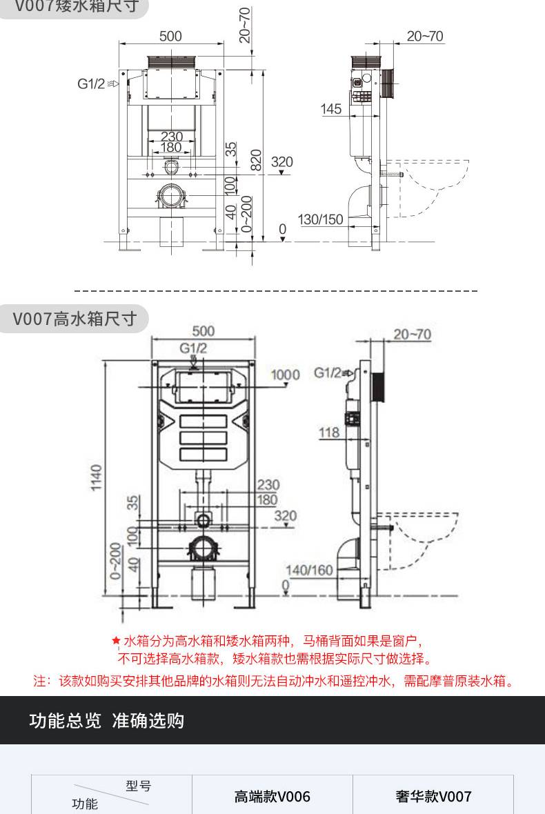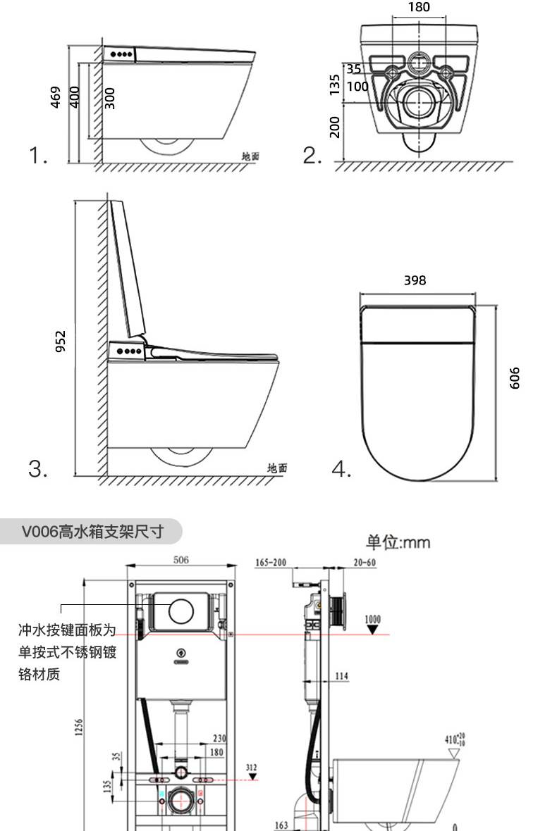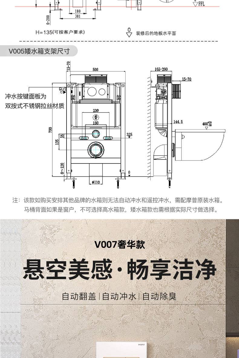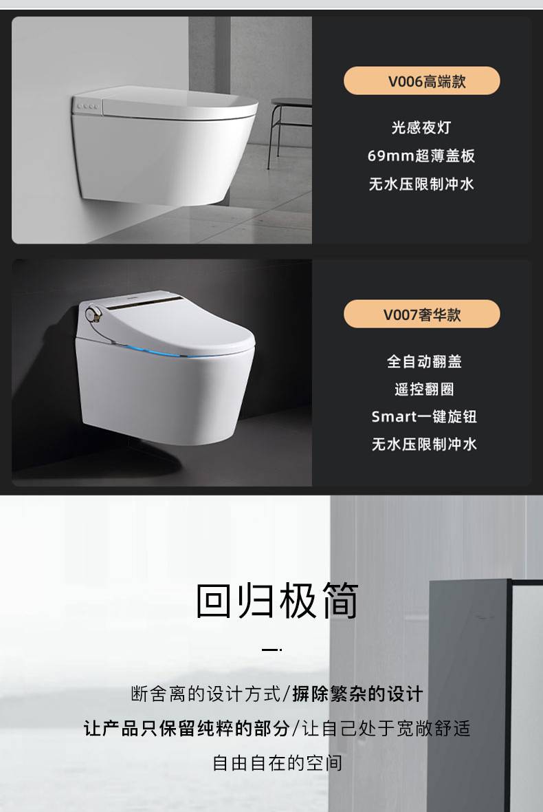OD59批发V006007壁挂智能马桶墙排嵌入隐藏水箱入墙一体式悬空坐