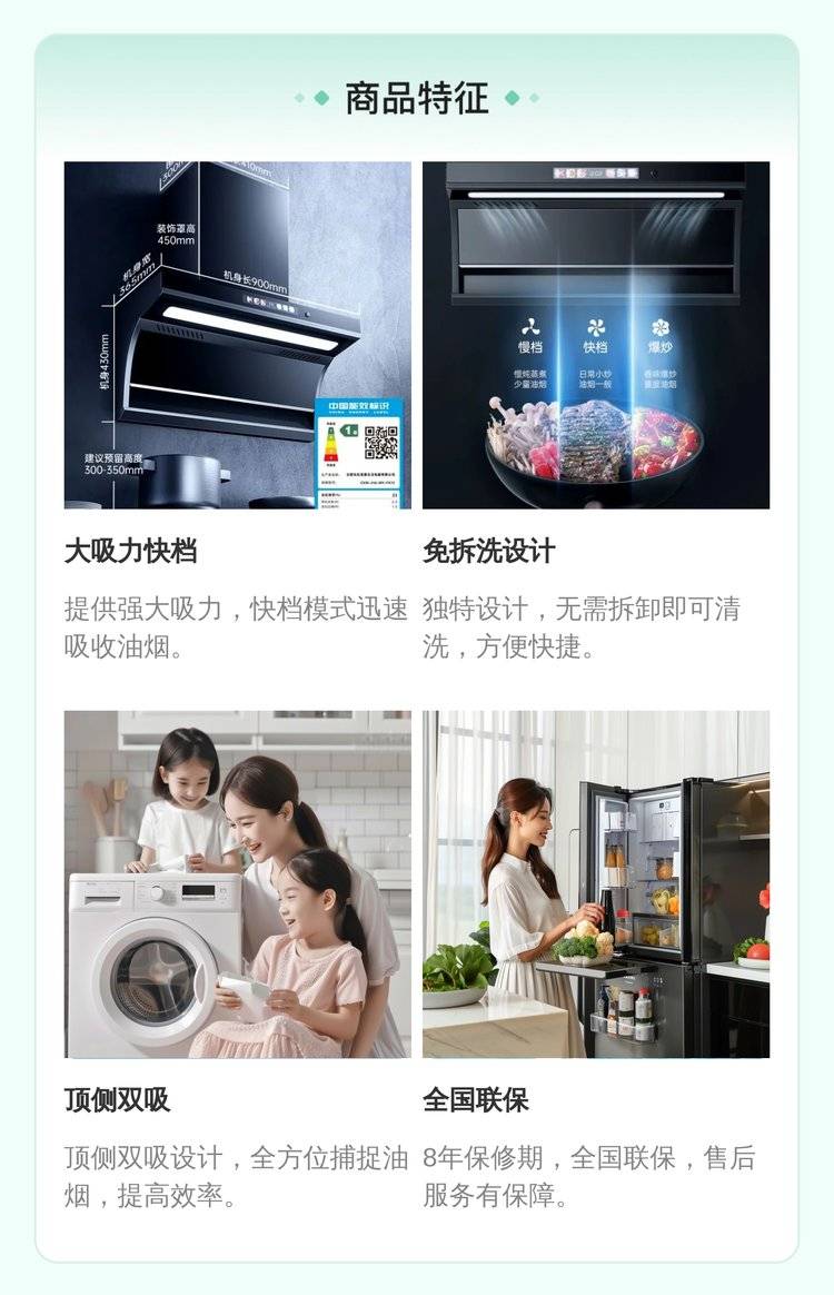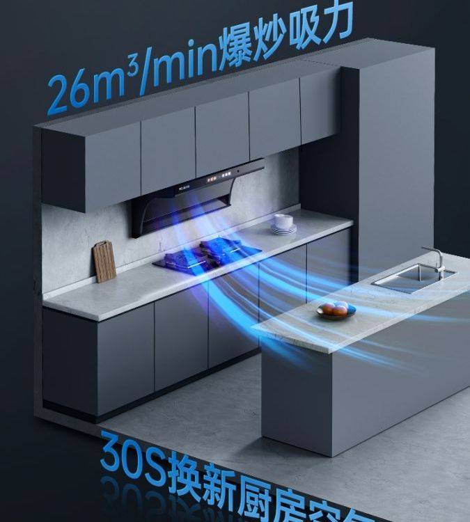 美菱油烟机家用厨房大吸力吸油烟机免拆洗抽烟机顶侧双吸抽油烟机