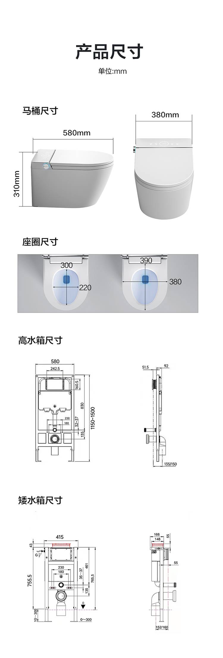 日本家用壁挂智能马桶隐藏水箱嵌入式一体全自动入墙式墙排坐便器