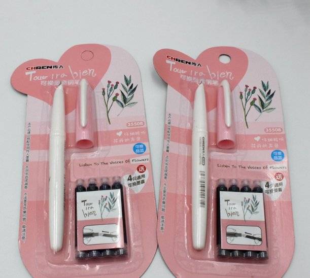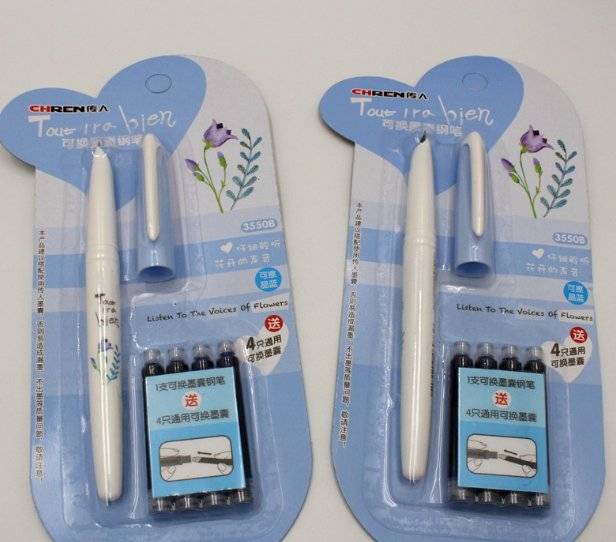 批发传人钢笔 套装学生直液式可换囊小尖钢 笔纯蓝 可擦3.4墨囊笔