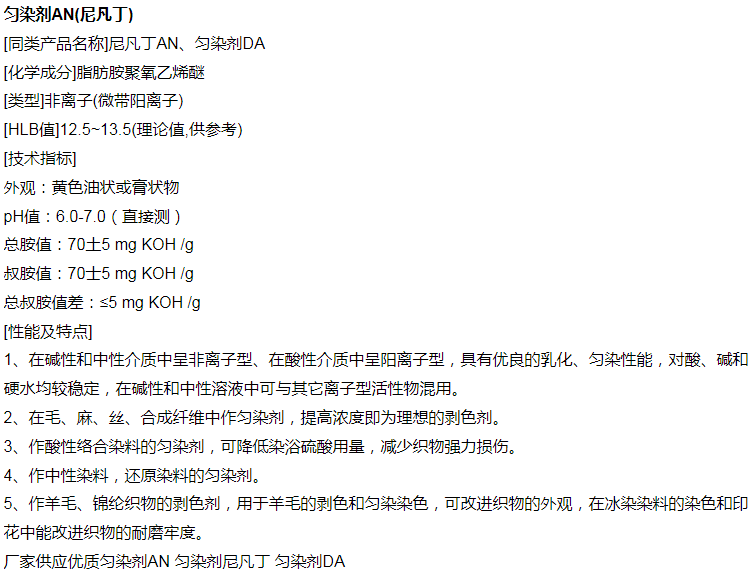 2222厂家供应优质匀染剂AN 尼凡丁 DA 作中性染料 还原染料