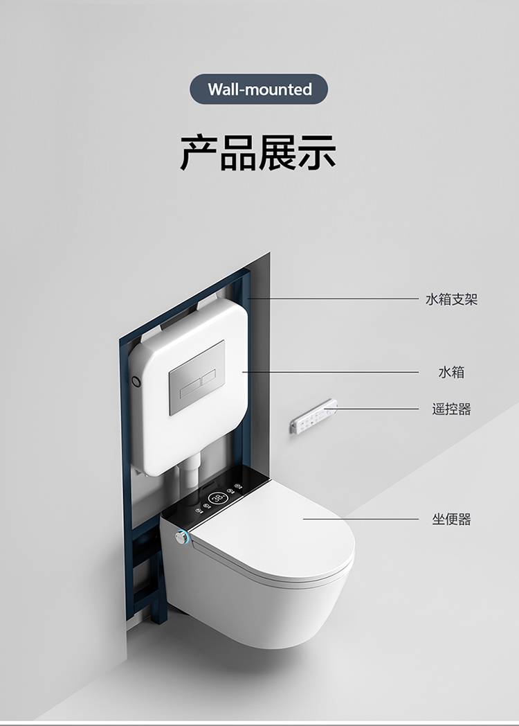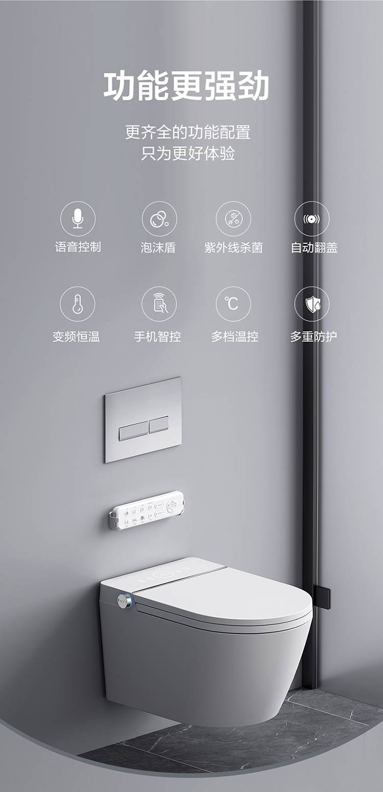壁挂智能马桶带水箱无水压限制入墙式泡沫盾防溅语音悬挂坐便器