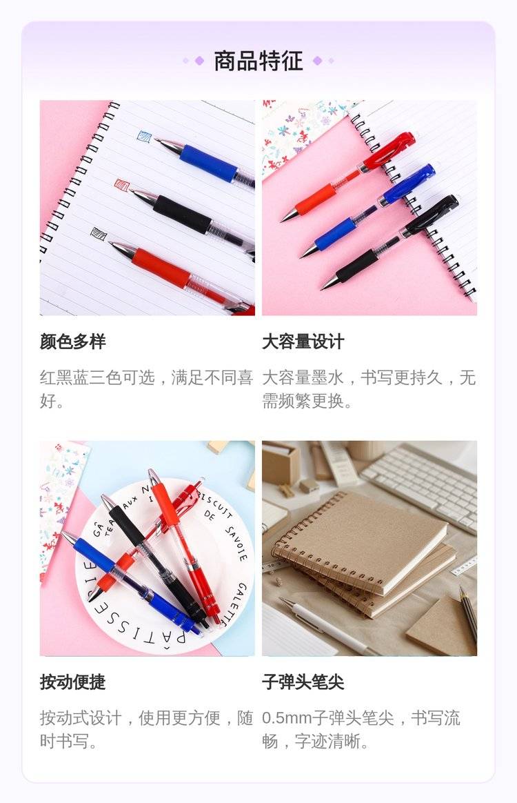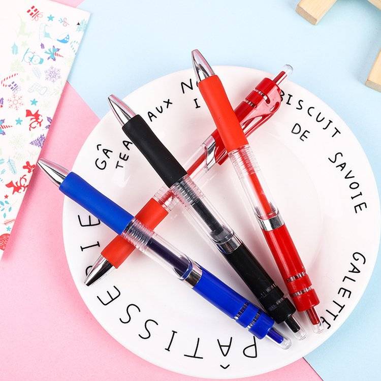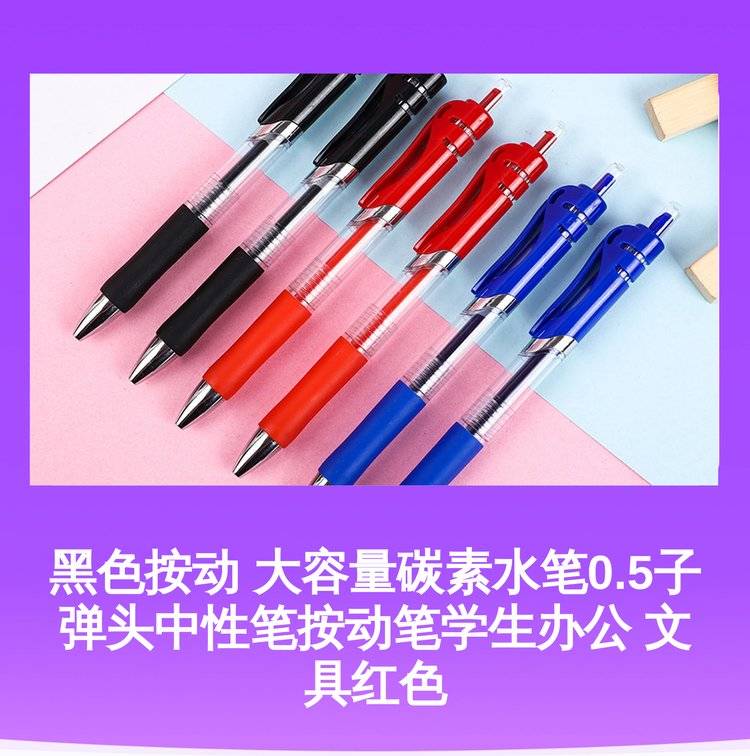 黑色按动 大容量碳素水笔0.5子弹头中性笔按动笔学生办公 文具红色