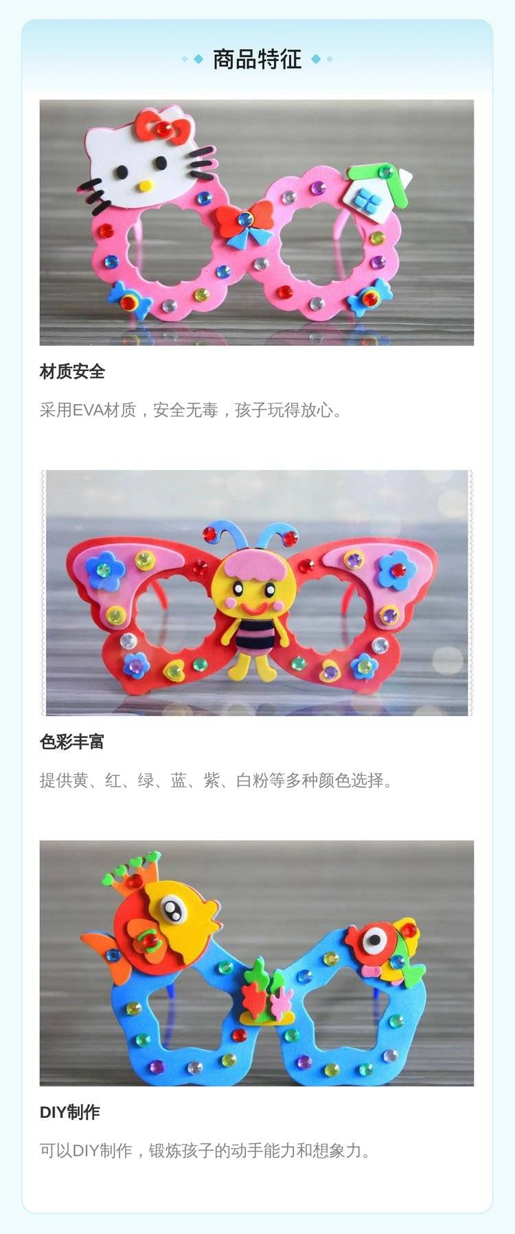 EVA钻石眼镜 生日DIY立体手工粘贴制作手工眼镜 幼儿园儿童玩具