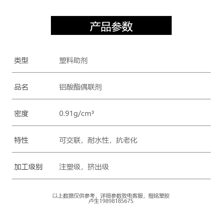 铝酸酯偶联剂 耐水 抗老化 稳定性 高活性 无机填充 阻燃剂 颜料 粘合剂