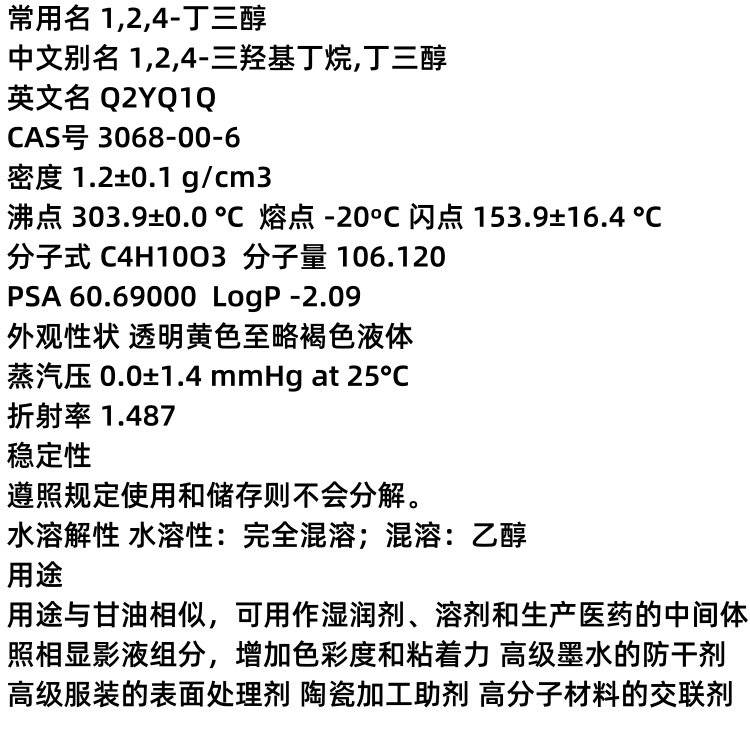 1,2,4-丁三醇 3068-00-6 照相显影液 医药中间体