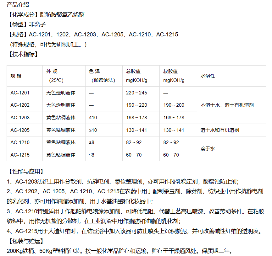 用作分散剂、抗静电剂、柔软整理剂