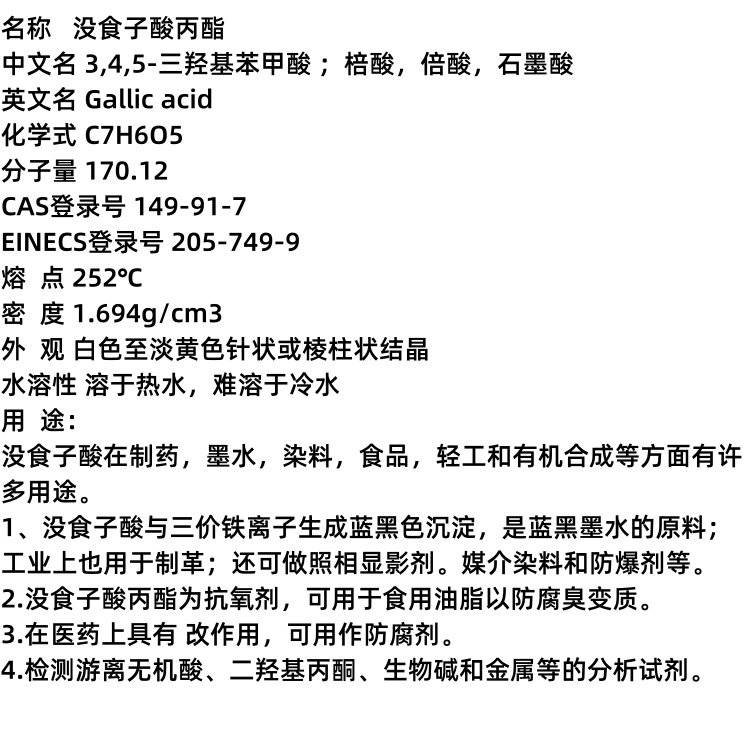 2222没食子酸丙酯 149-91-7 抗氧剂 媒介染料 照相显影剂