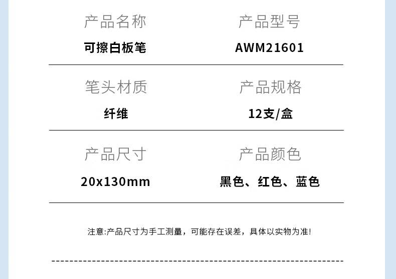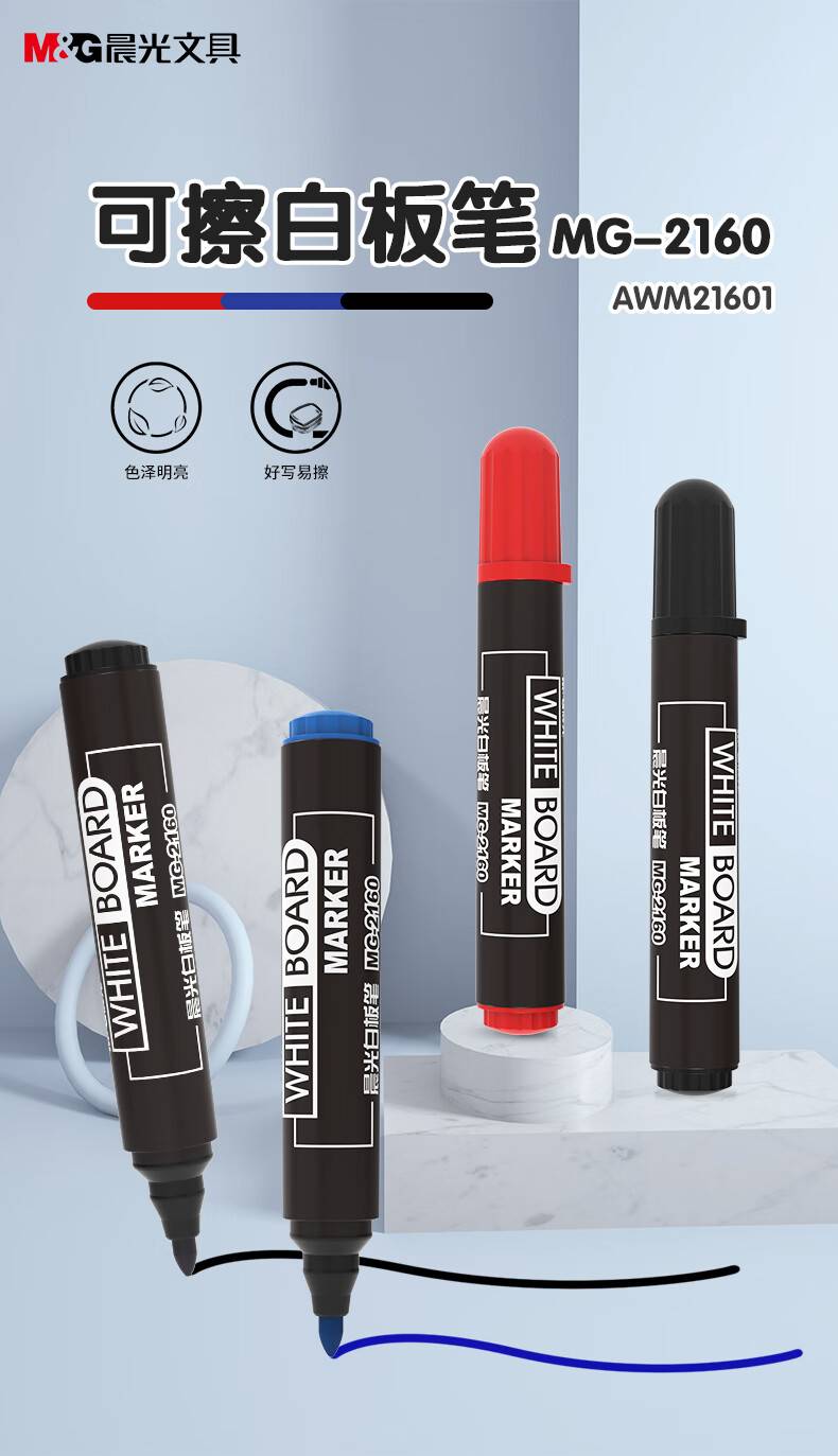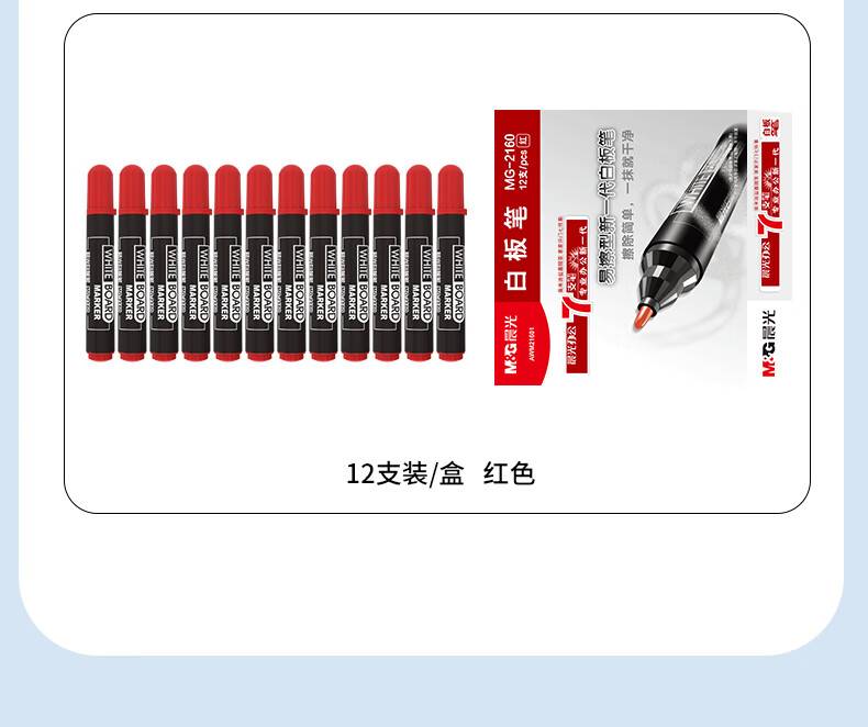 晨光可擦白板笔 红色单头易擦大容量会议笔 12支/盒MG2160