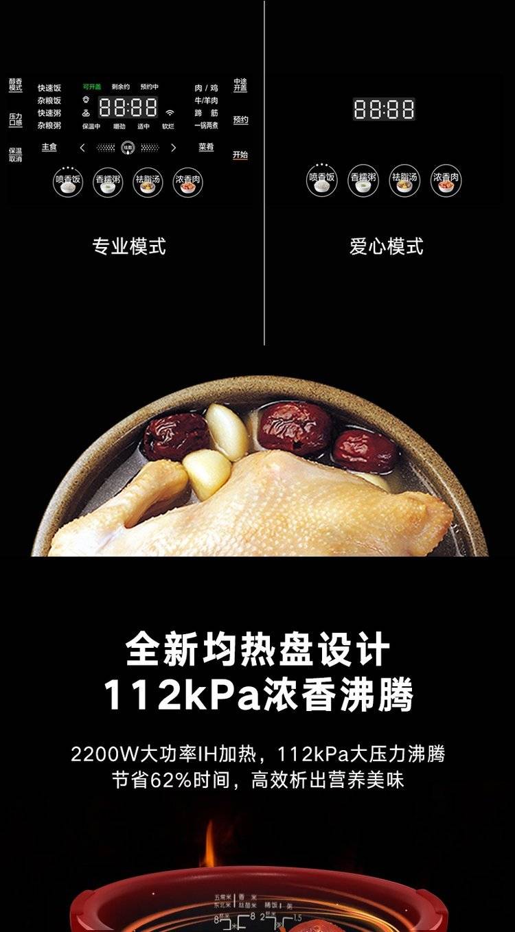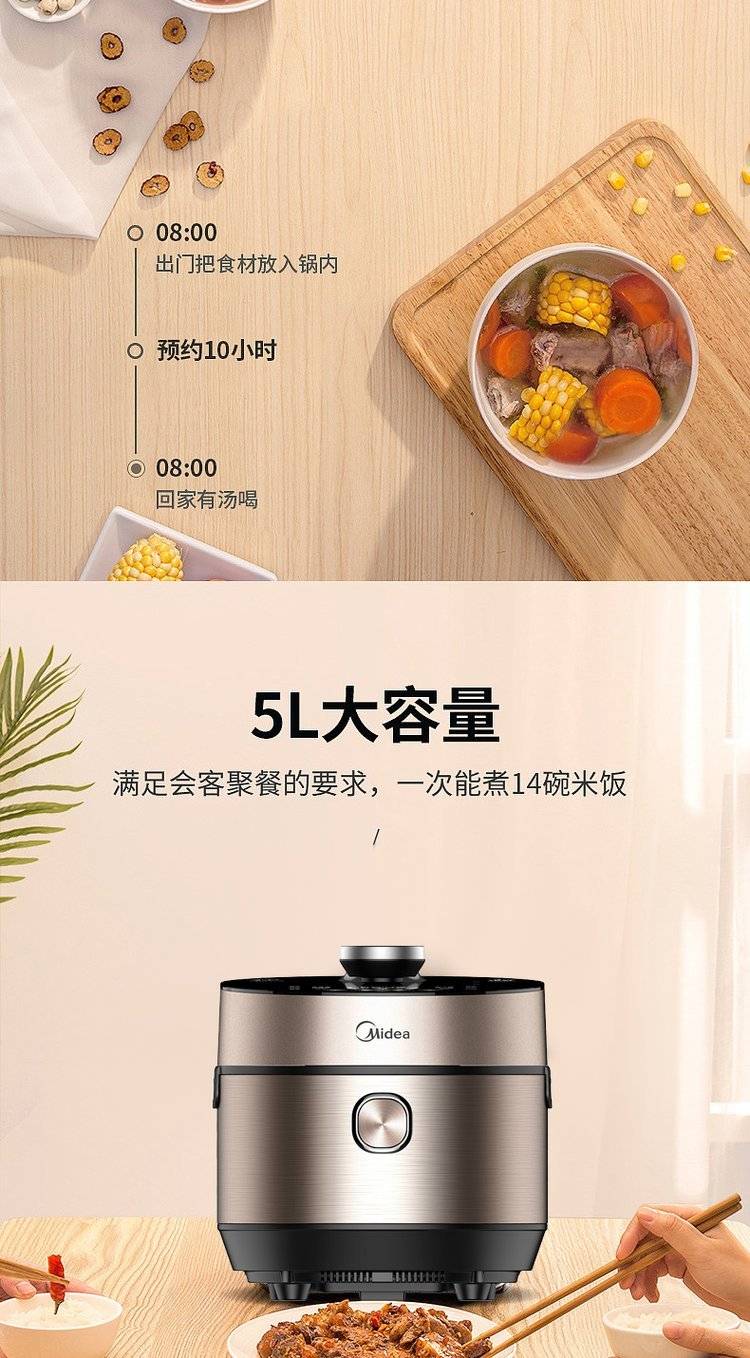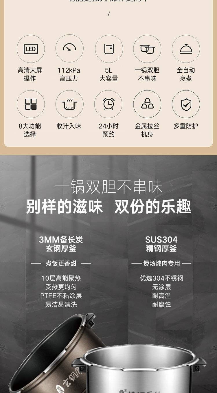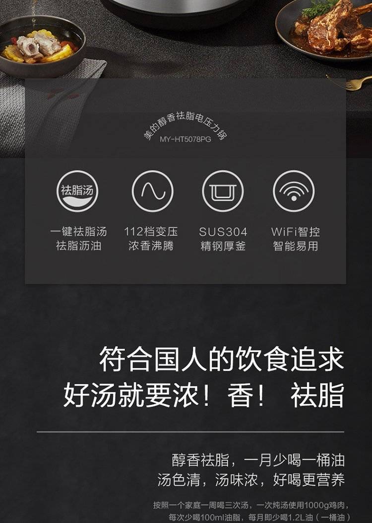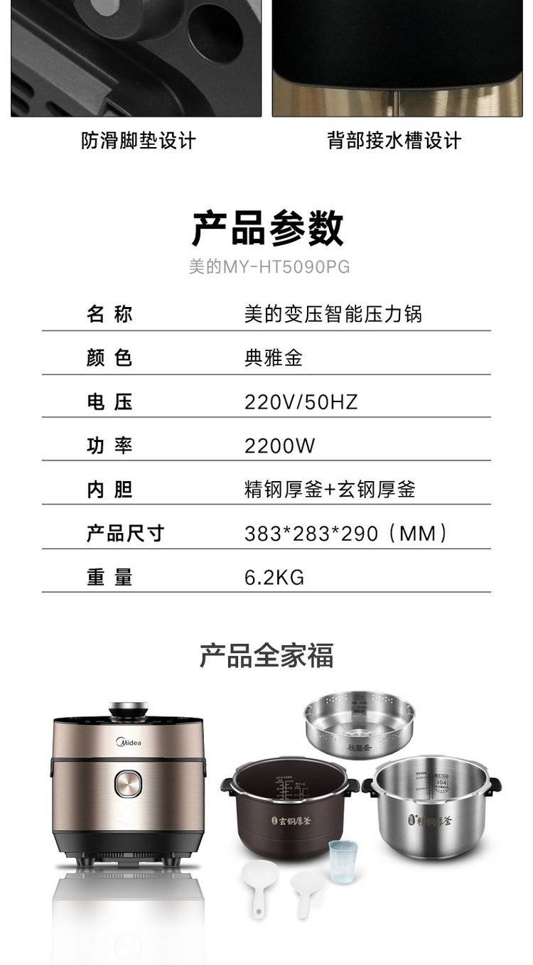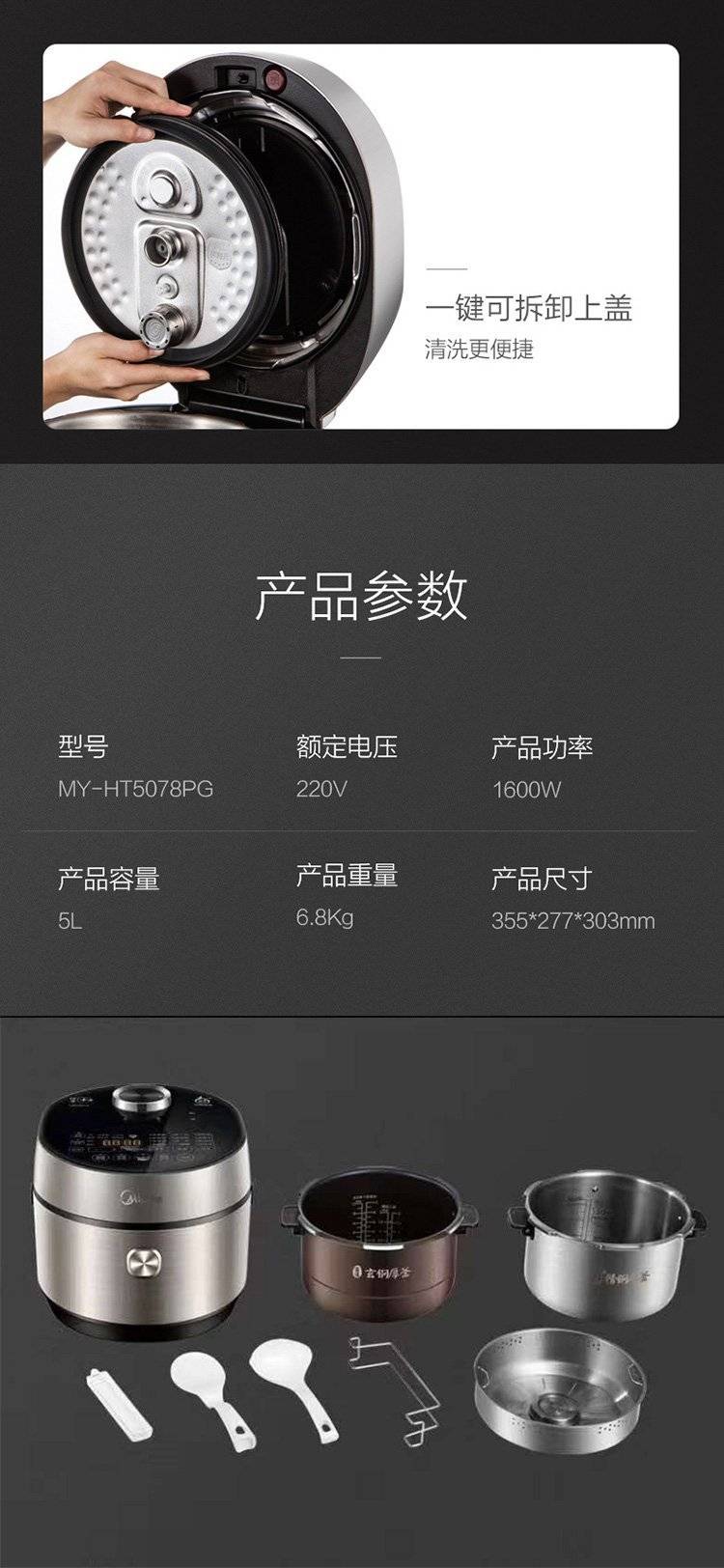 Midea/ MY-HT5078PG/5090PG智能IH高压锅家用双胆电压力锅5升