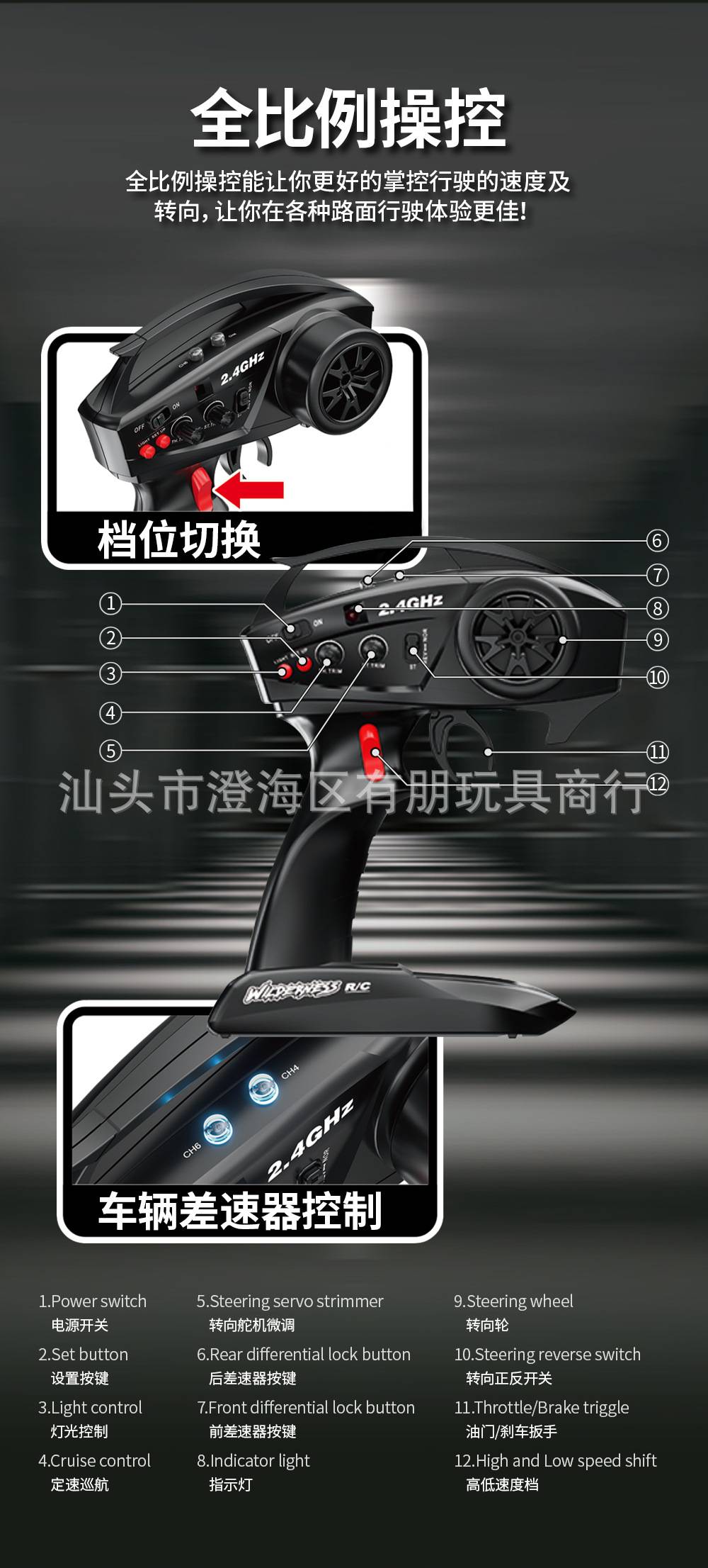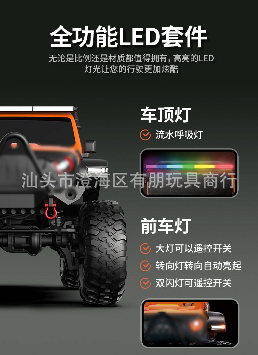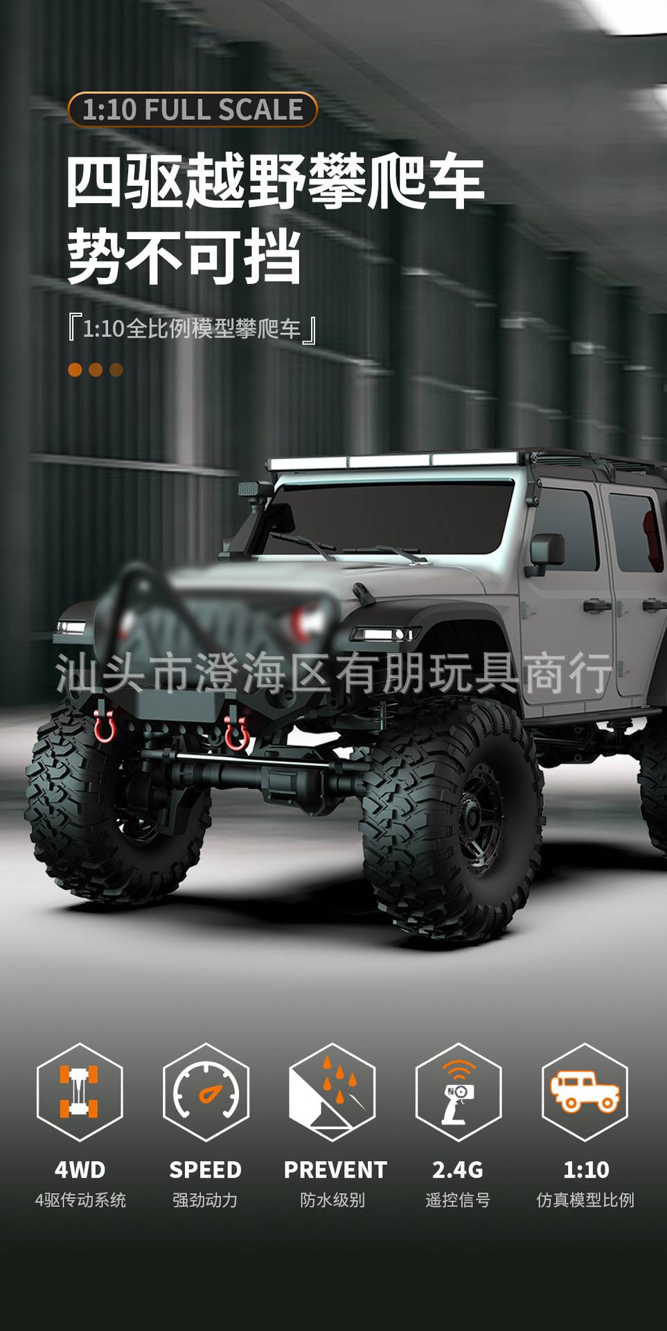 跨境 升级牧马人遥控车 1:10四驱漂移大脚攀爬车全比例模型越野车