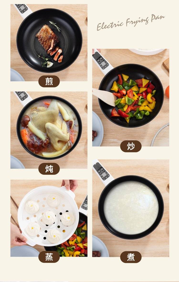 电炒锅家用炒菜锅一体式插电不粘锅多功能宿舍蒸煮电热料理锅