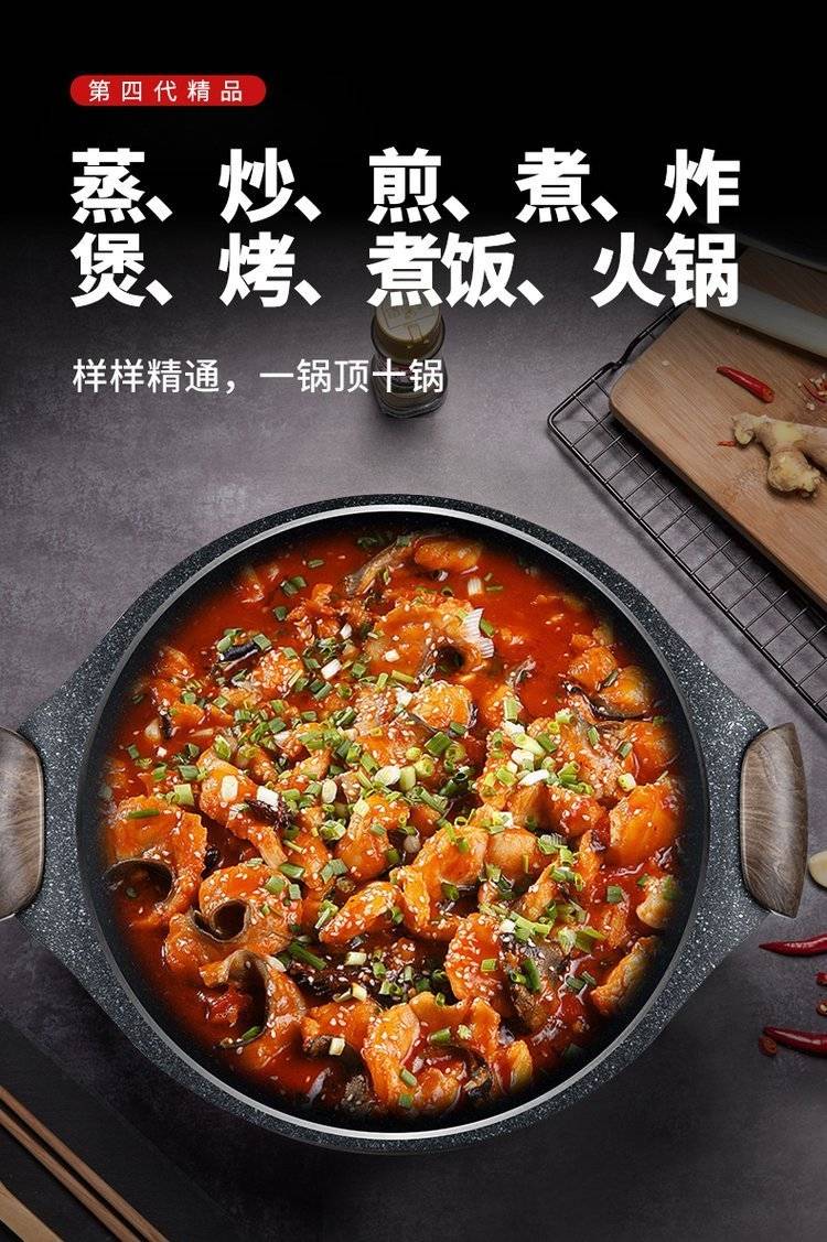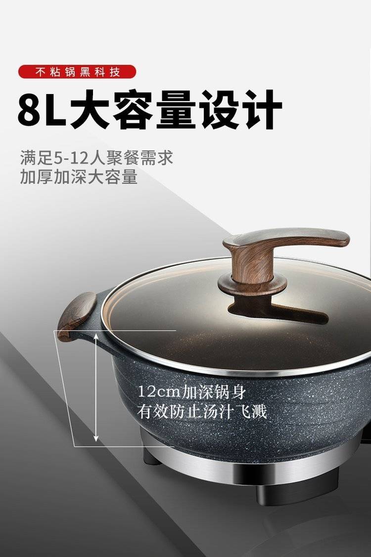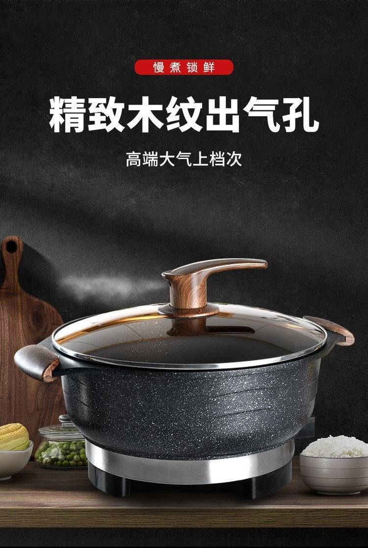 电热锅多功能家用电火火锅锅麦饭石电炒锅蒸煮饭一体式不粘炒菜锅