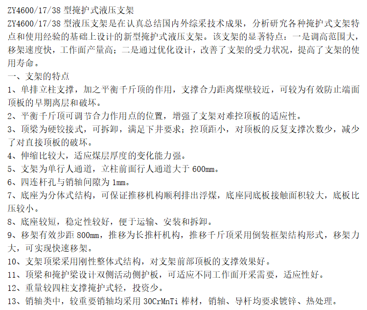 ZY4600/17/38型掩护式液压支架 维护方便 适用范围广 厂家