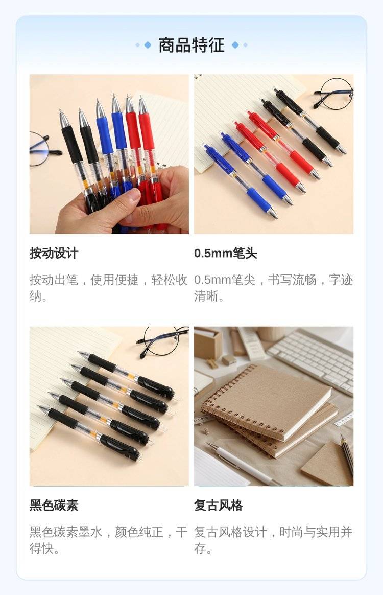 K35按动中性笔0.5mm签字笔办公黑色碳素笔学生考试刷题水性笔批发