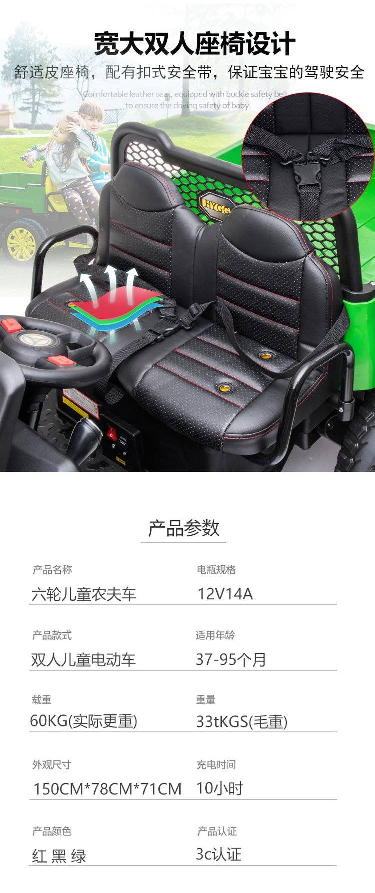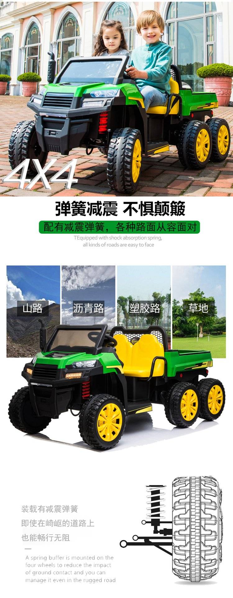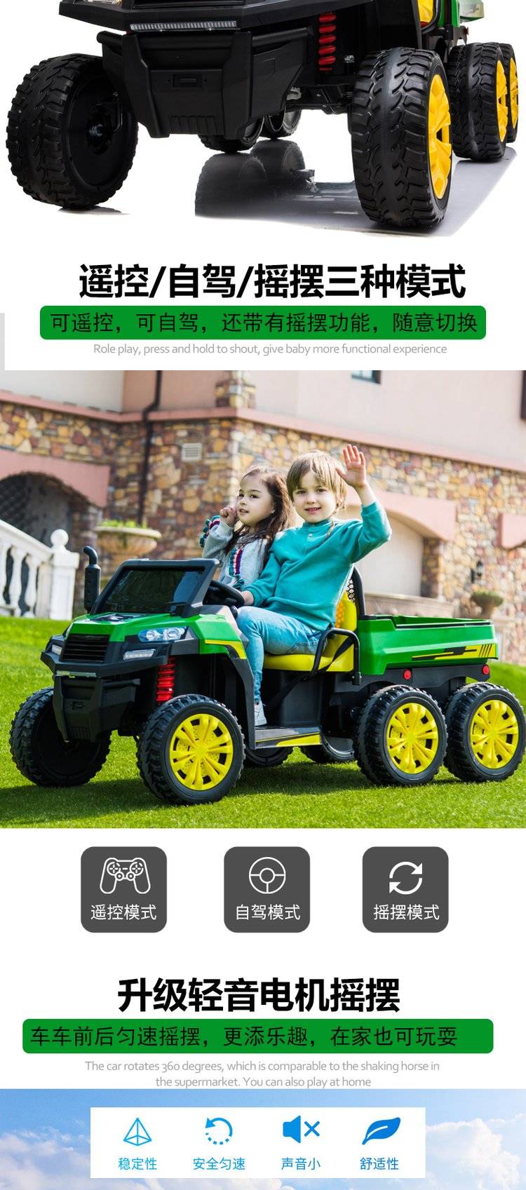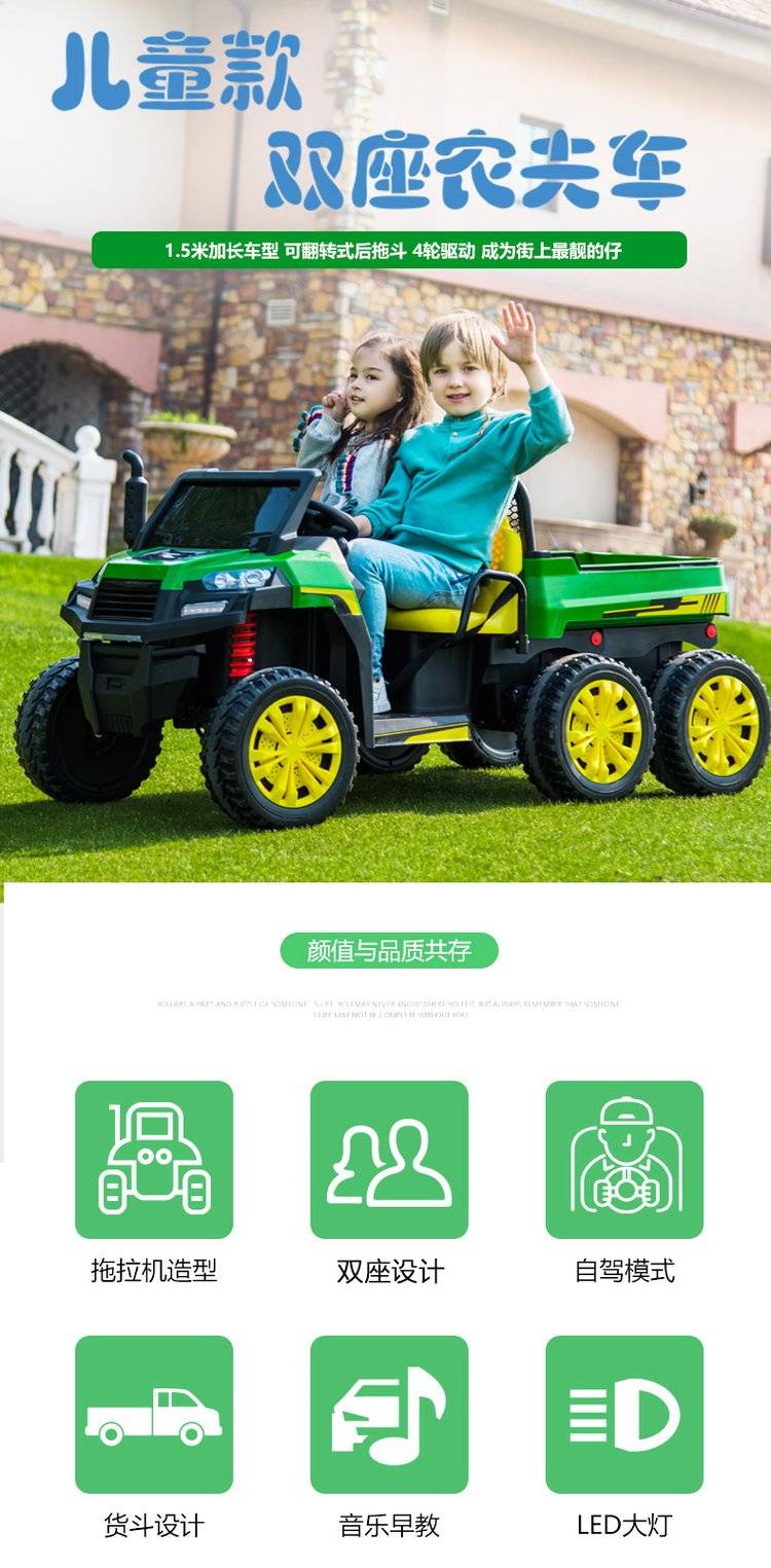 儿童拖拉机可坐大人宝宝电动玩具汽车四轮可卡车小孩男女货车