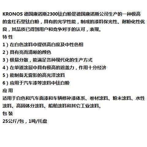 康诺斯 油墨及涂料用 钛白粉 KRONOS 2300 二氧化钛