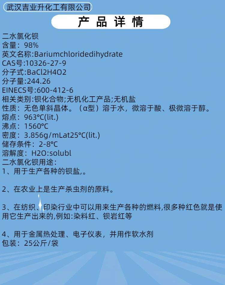 2222工业级二水氯化钡 含量98% 石油化工 造纸染料 废水处理 橡胶塑料