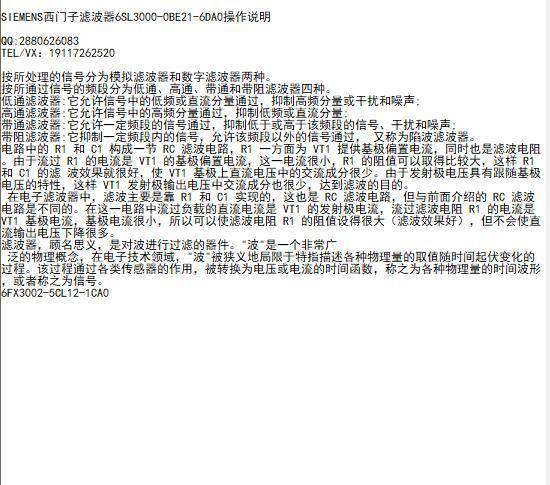 SIEMENS西门子滤波器6SL3000-0BE21-6DA0操作说明