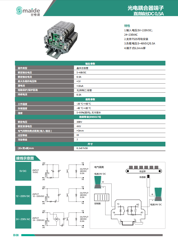 世麦德电气 光电耦合器端子 直流输出DC0.5A 5VDC