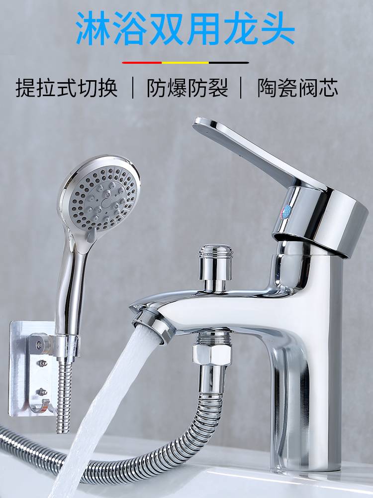 面盆水龙头冷热台盆带淋浴花洒二合一双用洗澡混水阀洗脸盆洗手盆