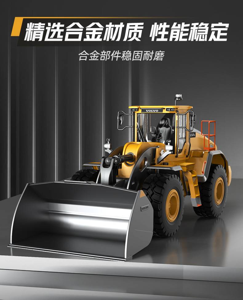 沃尔沃双鹰E592丝杆电动遥控铲车装载机四驱合金推土机男孩玩具车