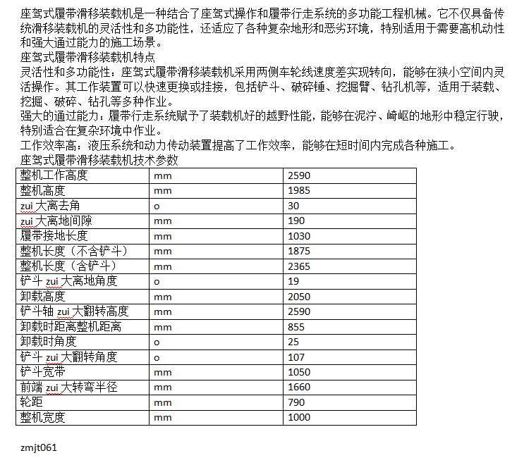 座驾式履带滑移装载机 履带式行走 适应地形能力强