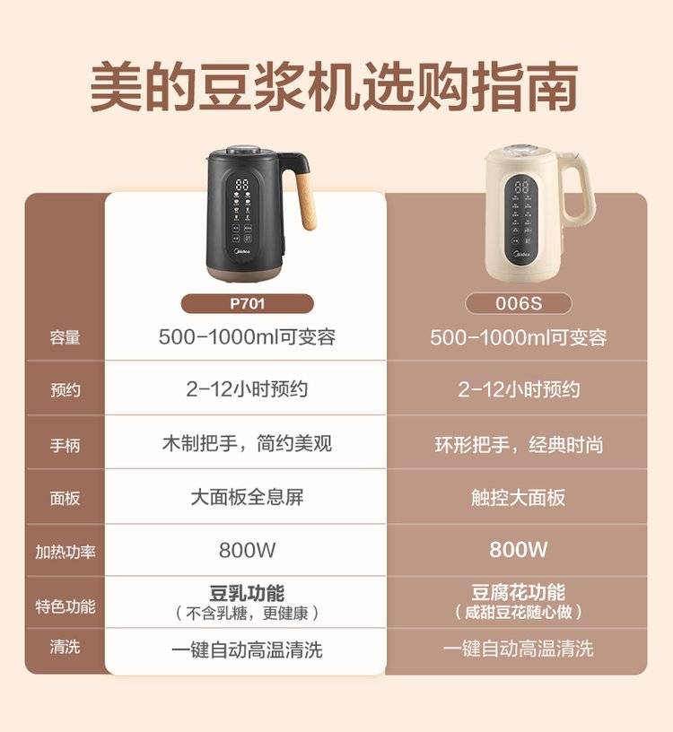 豆乳功能、豆腐花功能、一键自动高温清洗
