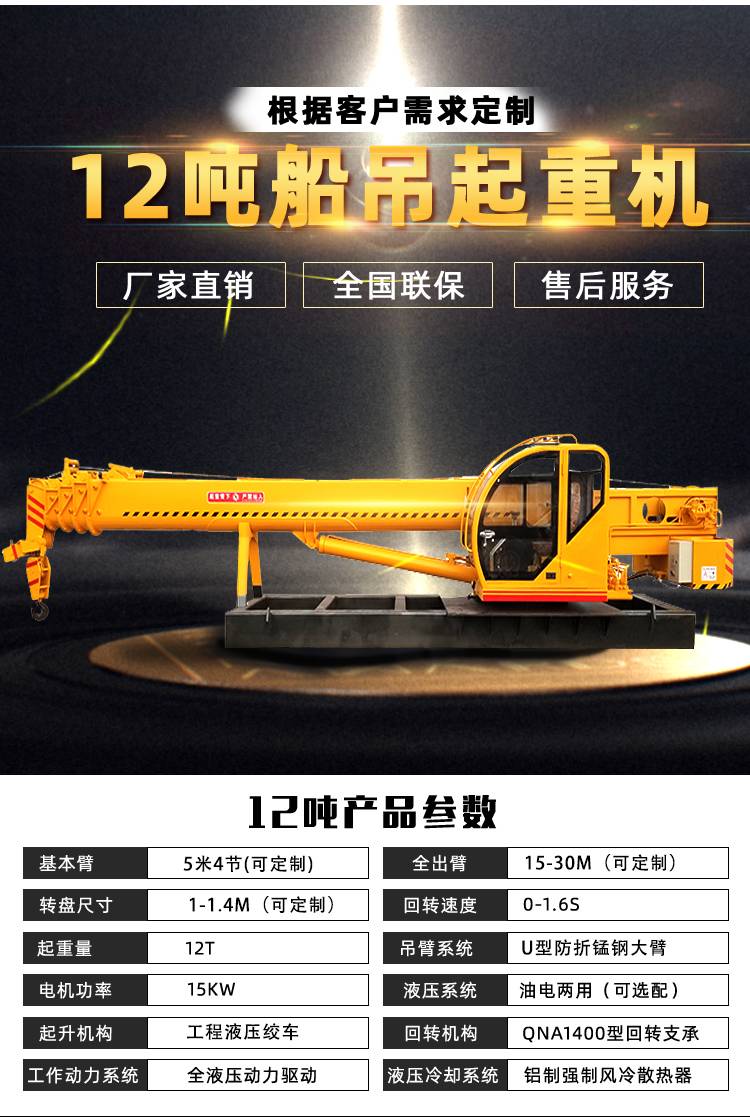 16吨海上作业船吊 码头港口甲板起重机 液压伸缩克令吊
