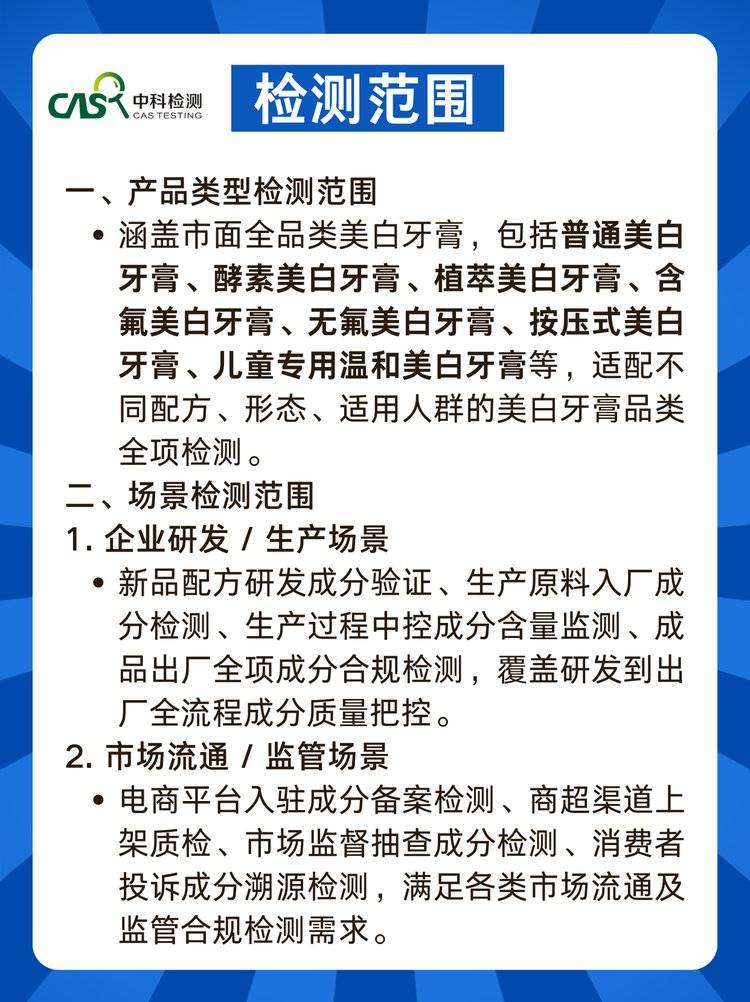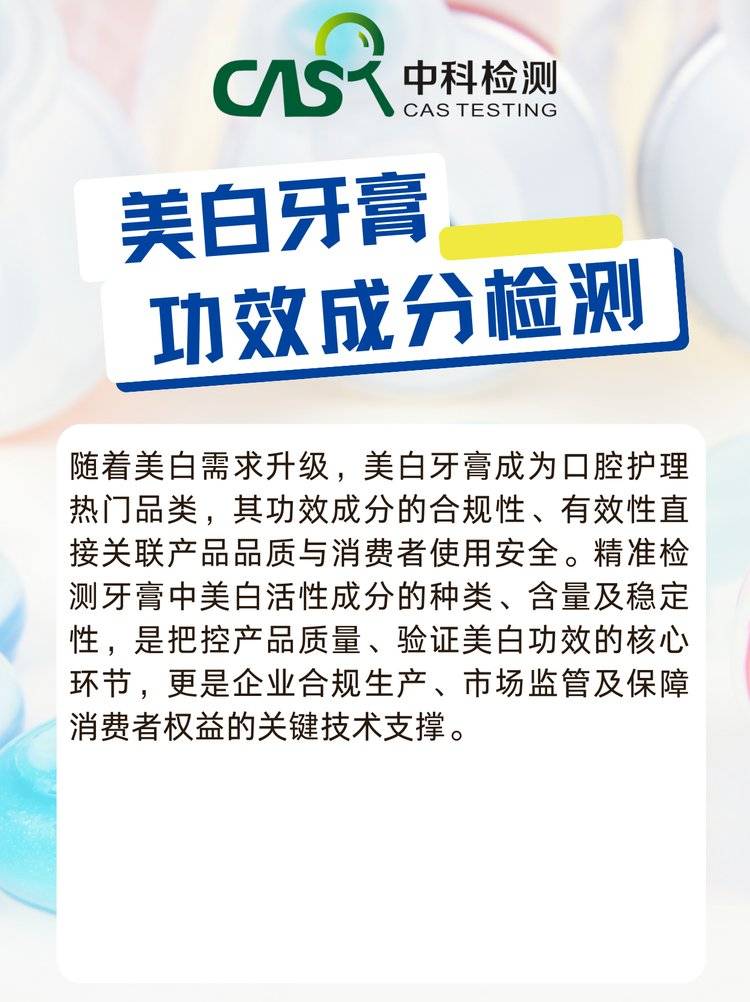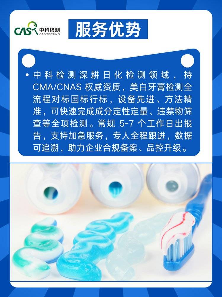 美白牙膏功效成分检测 成分定性定量 + 功效验证一站式服务 合规报告
