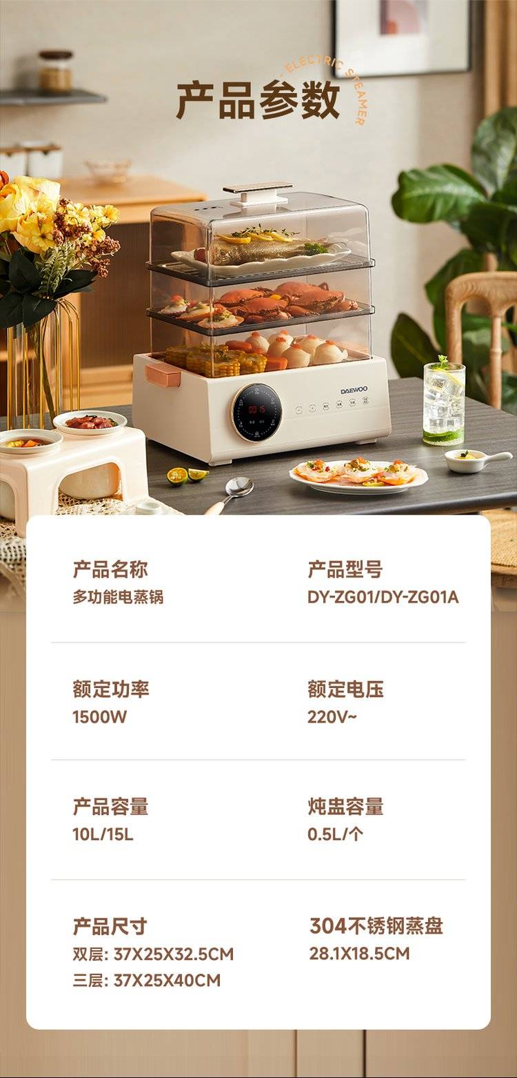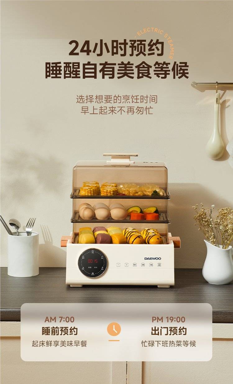 韩国大宇煮蛋器蒸炖一体电蒸笼家用大容量蒸箱全自动三层多功能锅