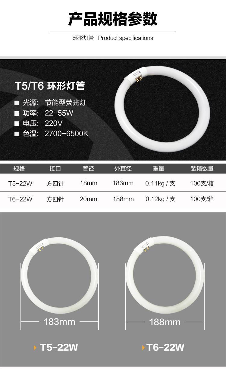 超麦24珠环形灯管 家用吸顶节能灯 高显色T5T6荧光灯