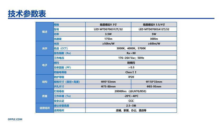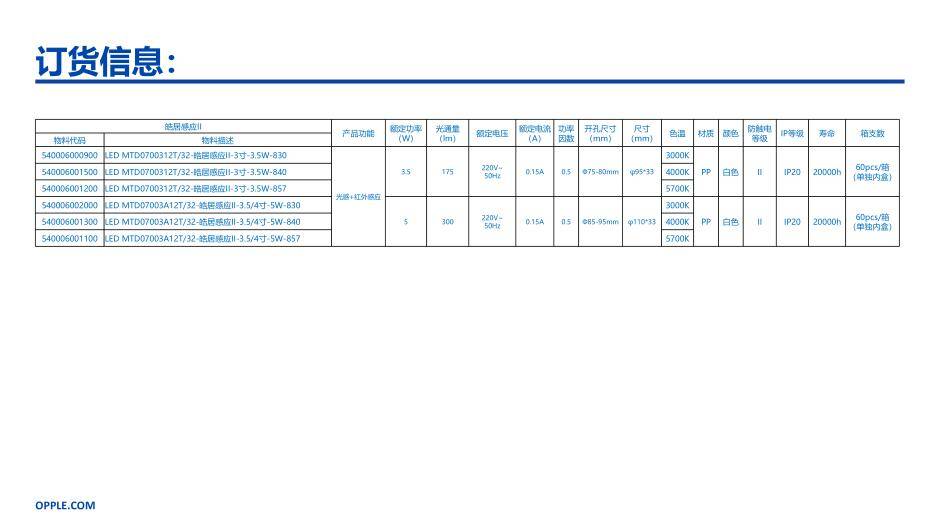 欧普4寸感应筒灯LED MTD07003A12T/32 5W 5700K光感+红外感应