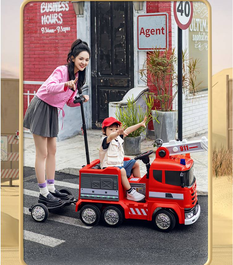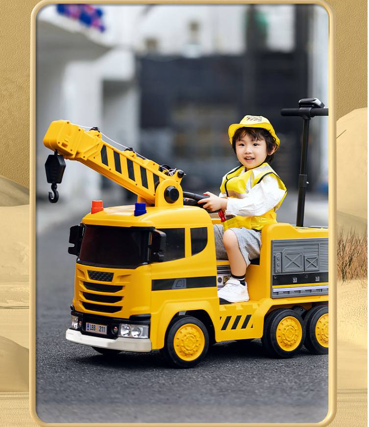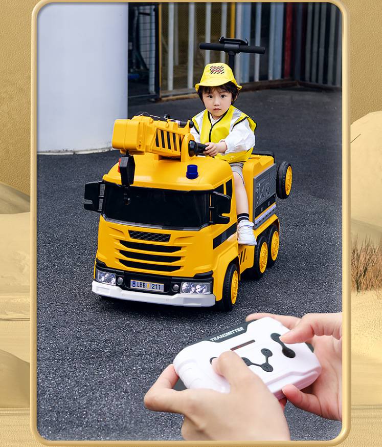 新款儿童电动车工程车挖土机消防车亲子车可坐人充电四驱遥控玩具