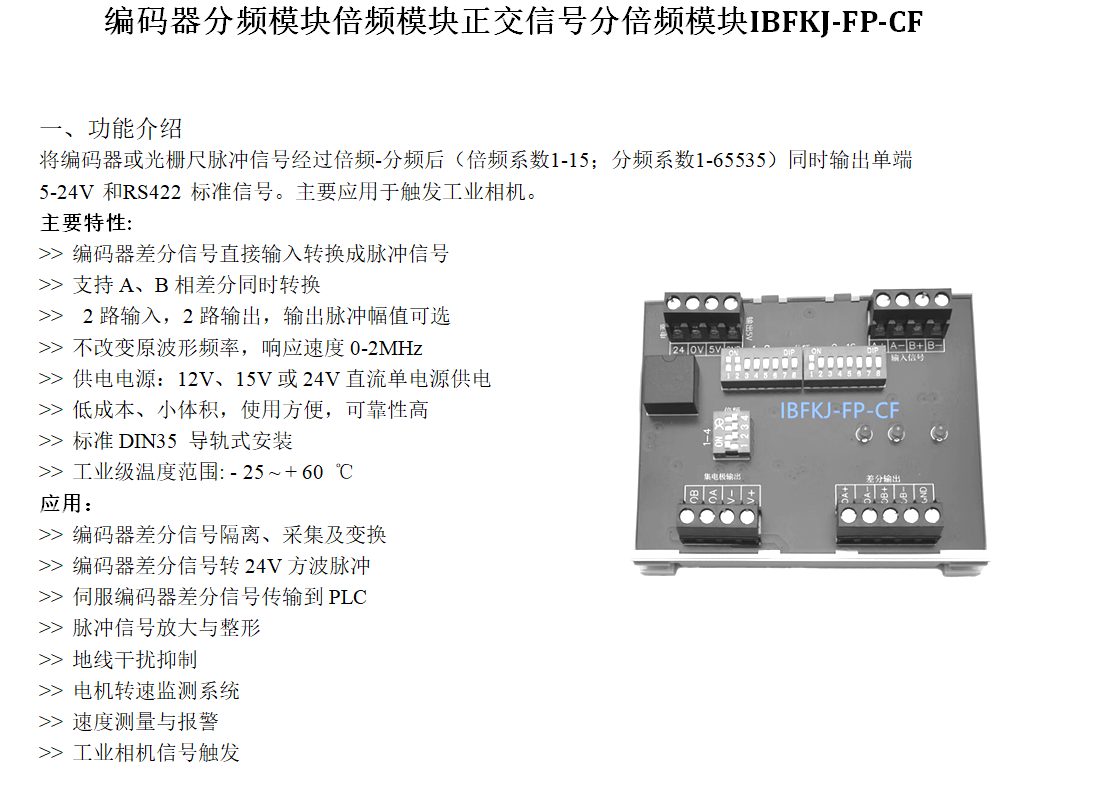 正交信号分倍频模块 编码器工业相机触发分频模块倍频模块