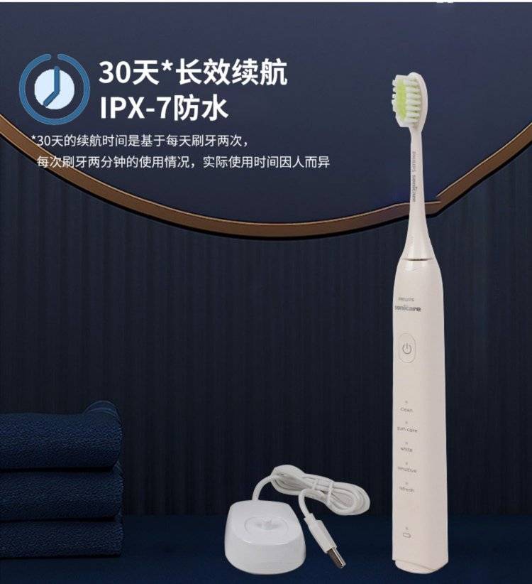 30天长效续航(基于每天刷牙两次,每次两分钟)