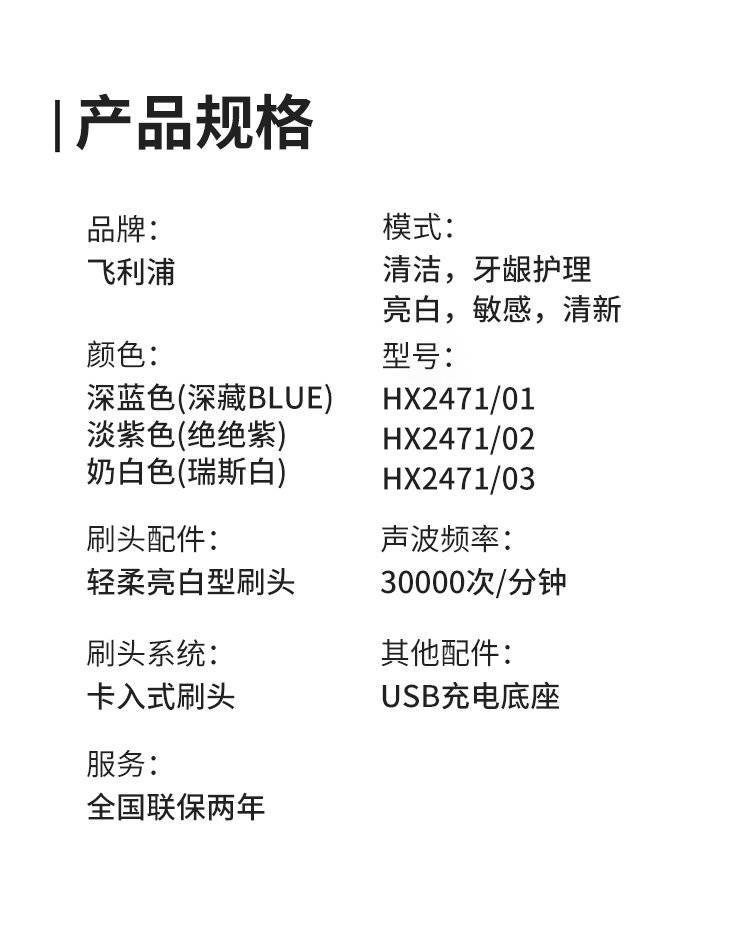 头等舱声波式电动牙刷HX2471 成人情侣全自动款
