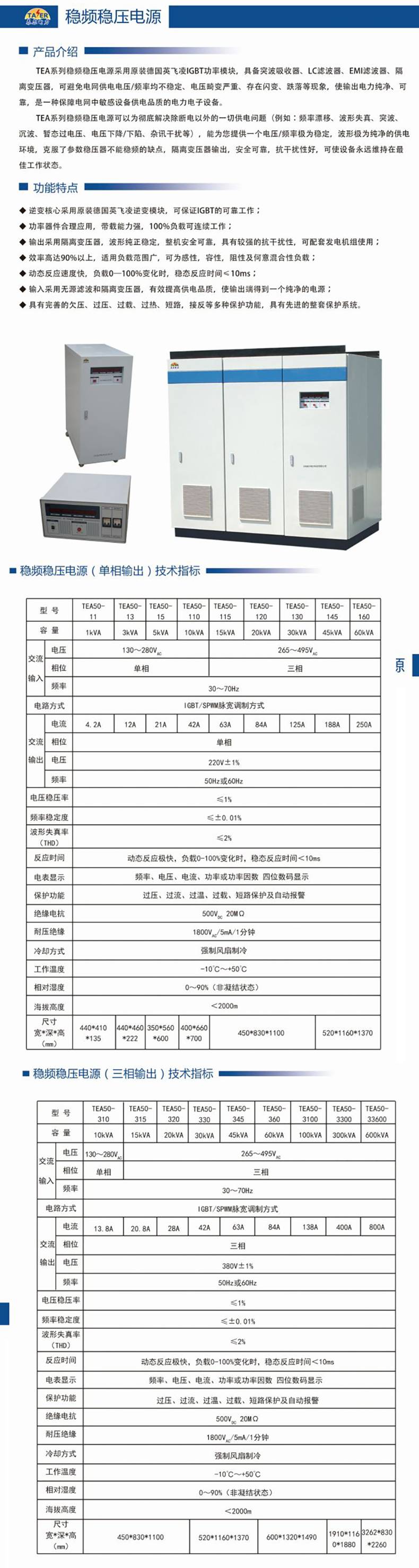 交流稳压器 支持定制 耐冲击性强 TEA50系列 泰尔电力
