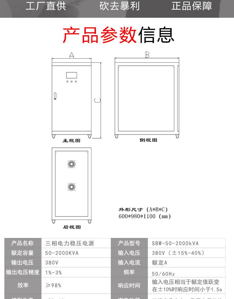 矿用发电机组稳压器 1600KVA/1500KVA大功率三相补偿式电力稳压器