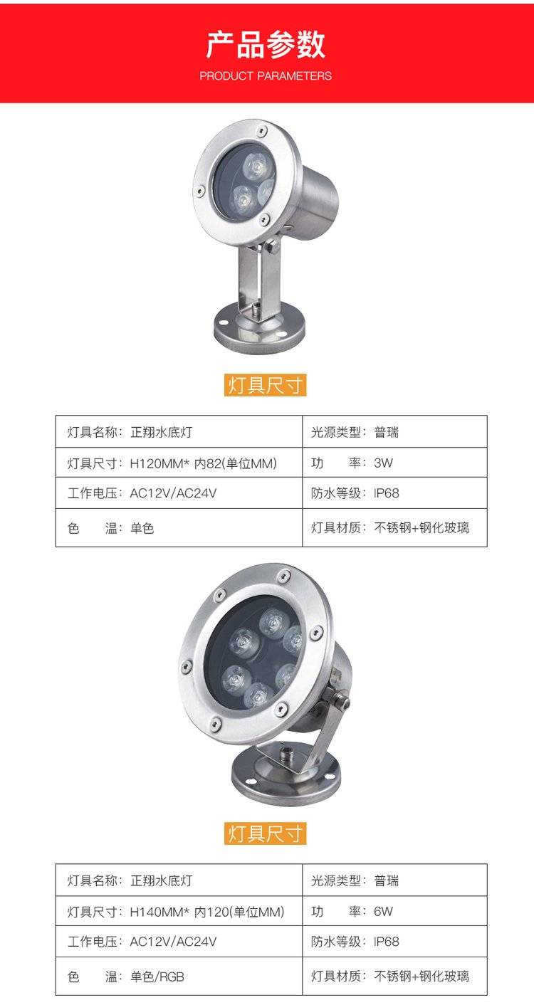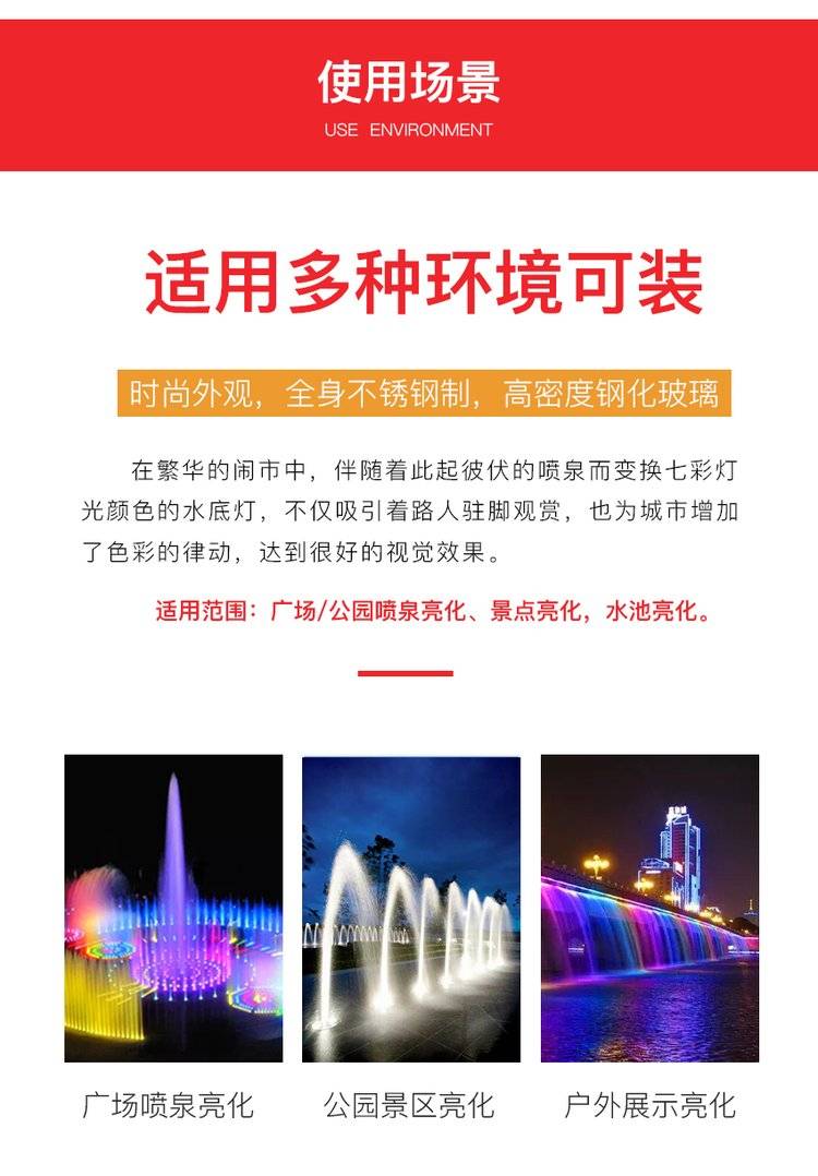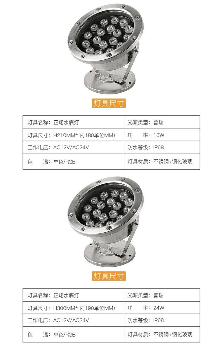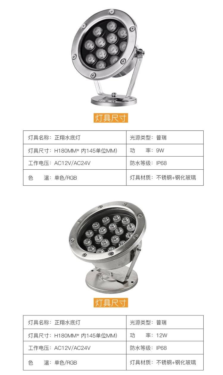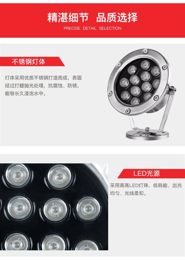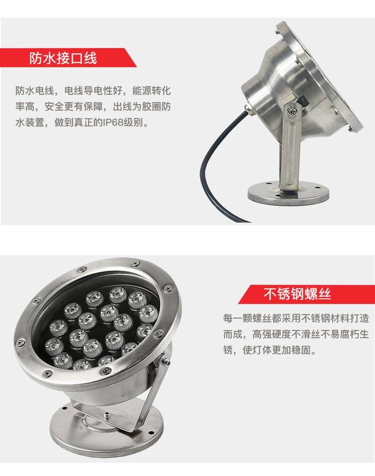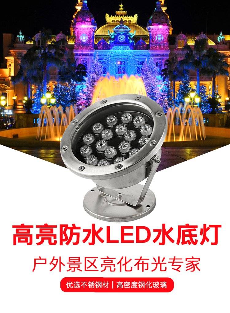 led水底灯七彩射灯6-36W景观鱼池水下喷泉灯