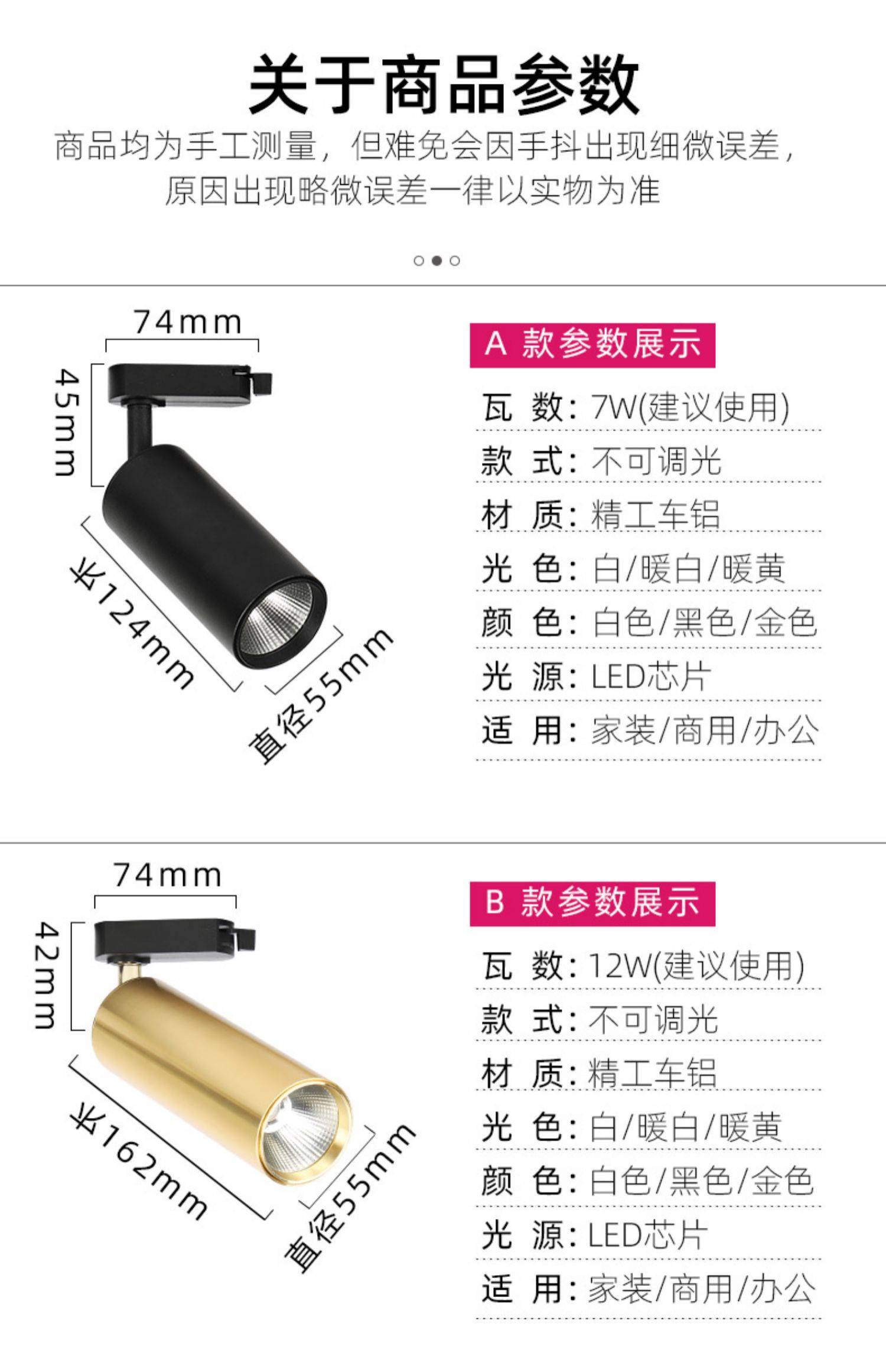 超麦明装金色射灯 led轨道灯 家用小天花灯 背景墙店铺商用筒灯75
