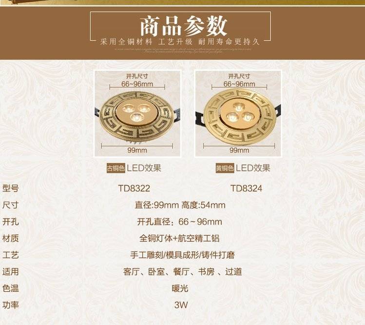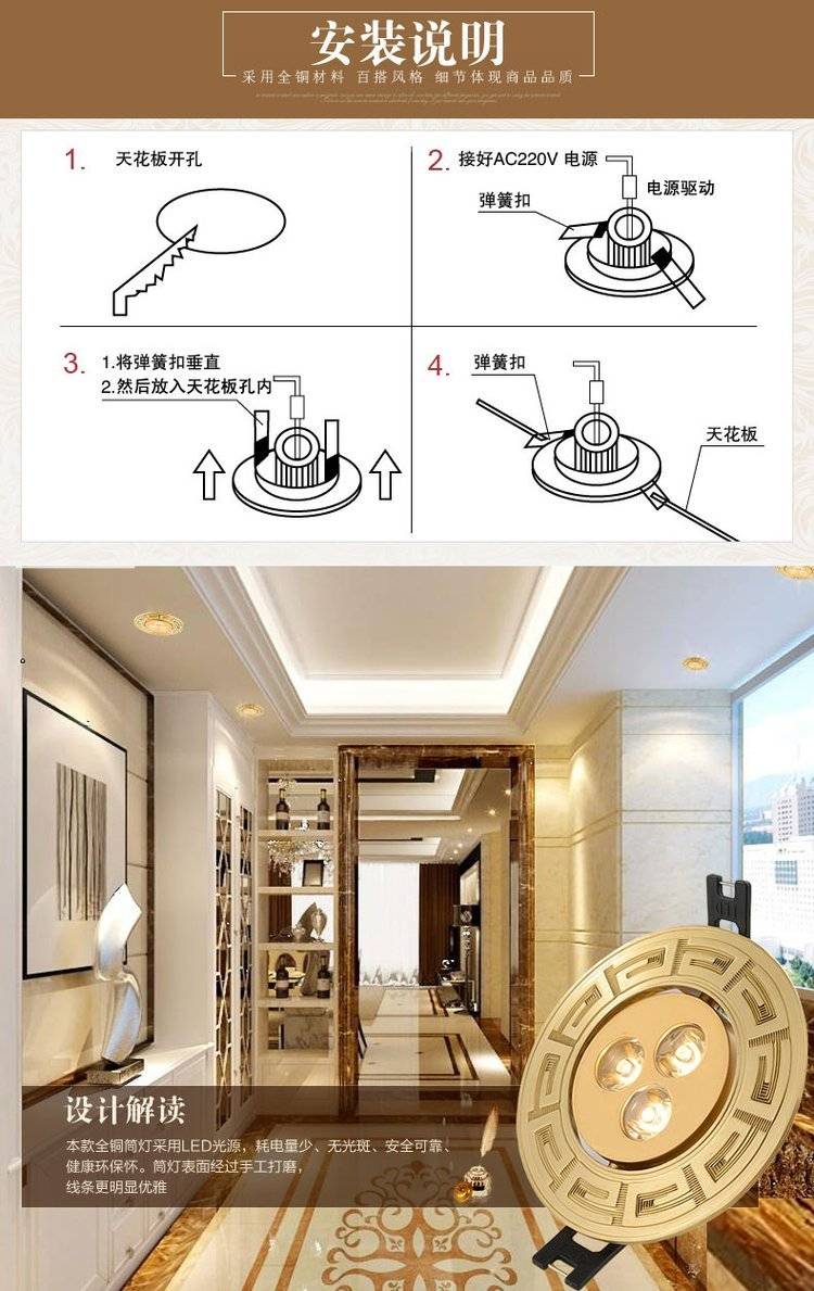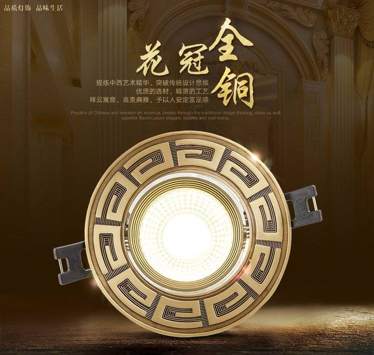 进丰新中式led射灯 嵌入式全铜壳筒灯 cob过道玄关天花灯