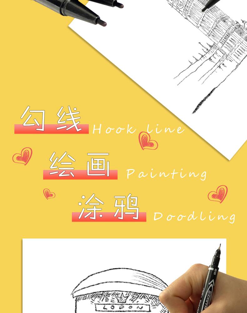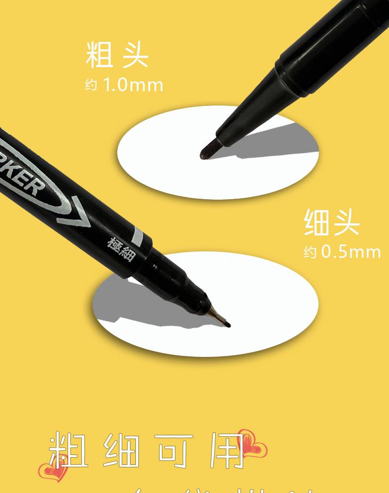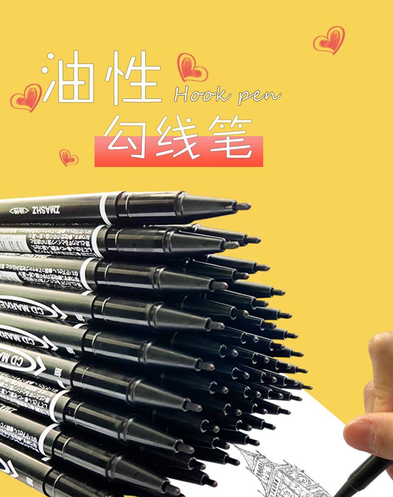记号笔油性细头儿童绘画勾线笔黑色双头描边防水不易掉色不可擦标记划勾边批发小头马克笔可加墨学生用红蓝细